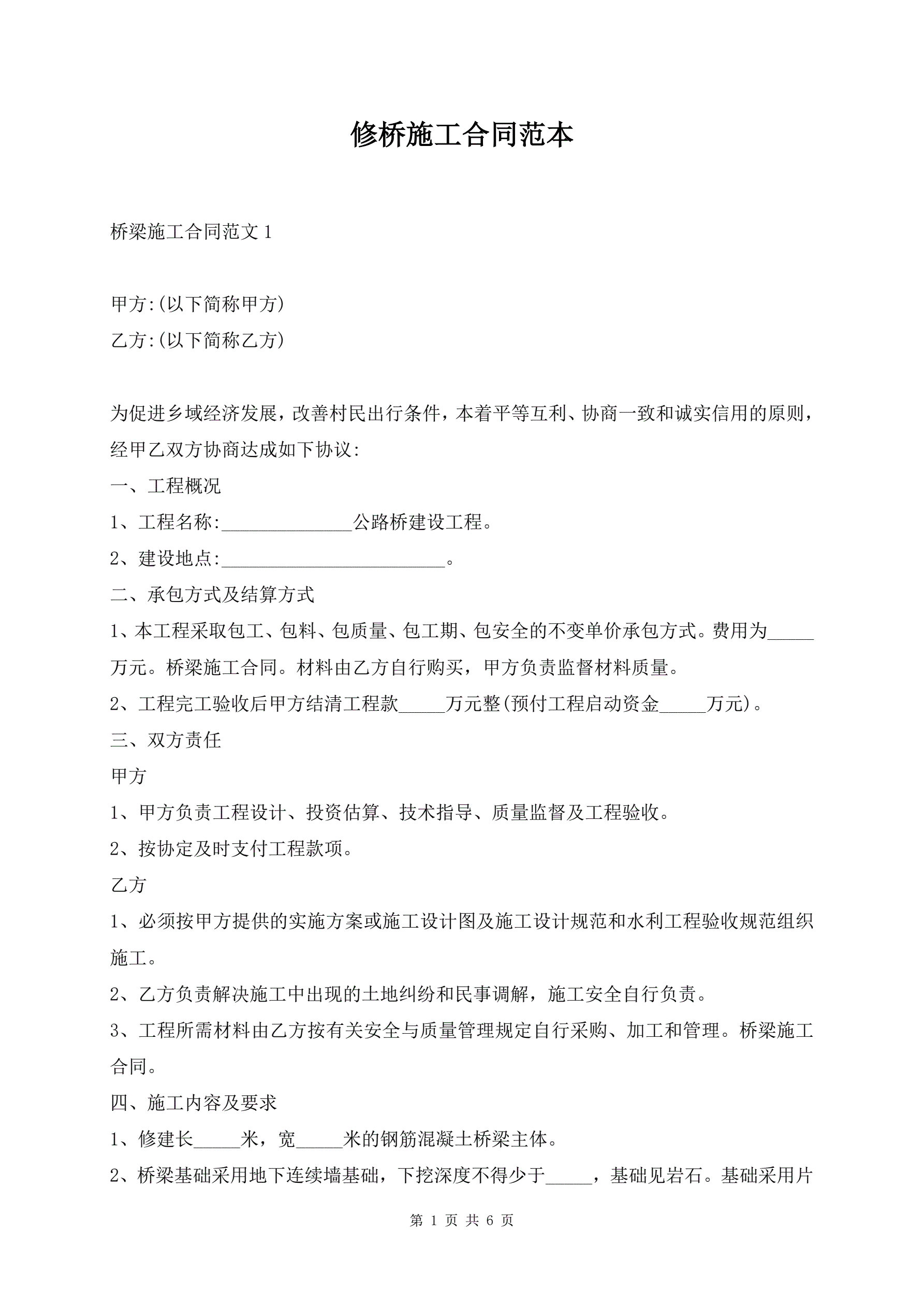 >修桥施工合同范本