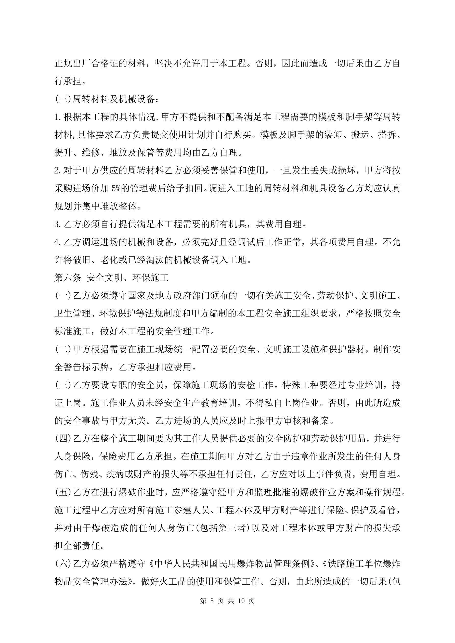 >隧道劳务分包合同范本