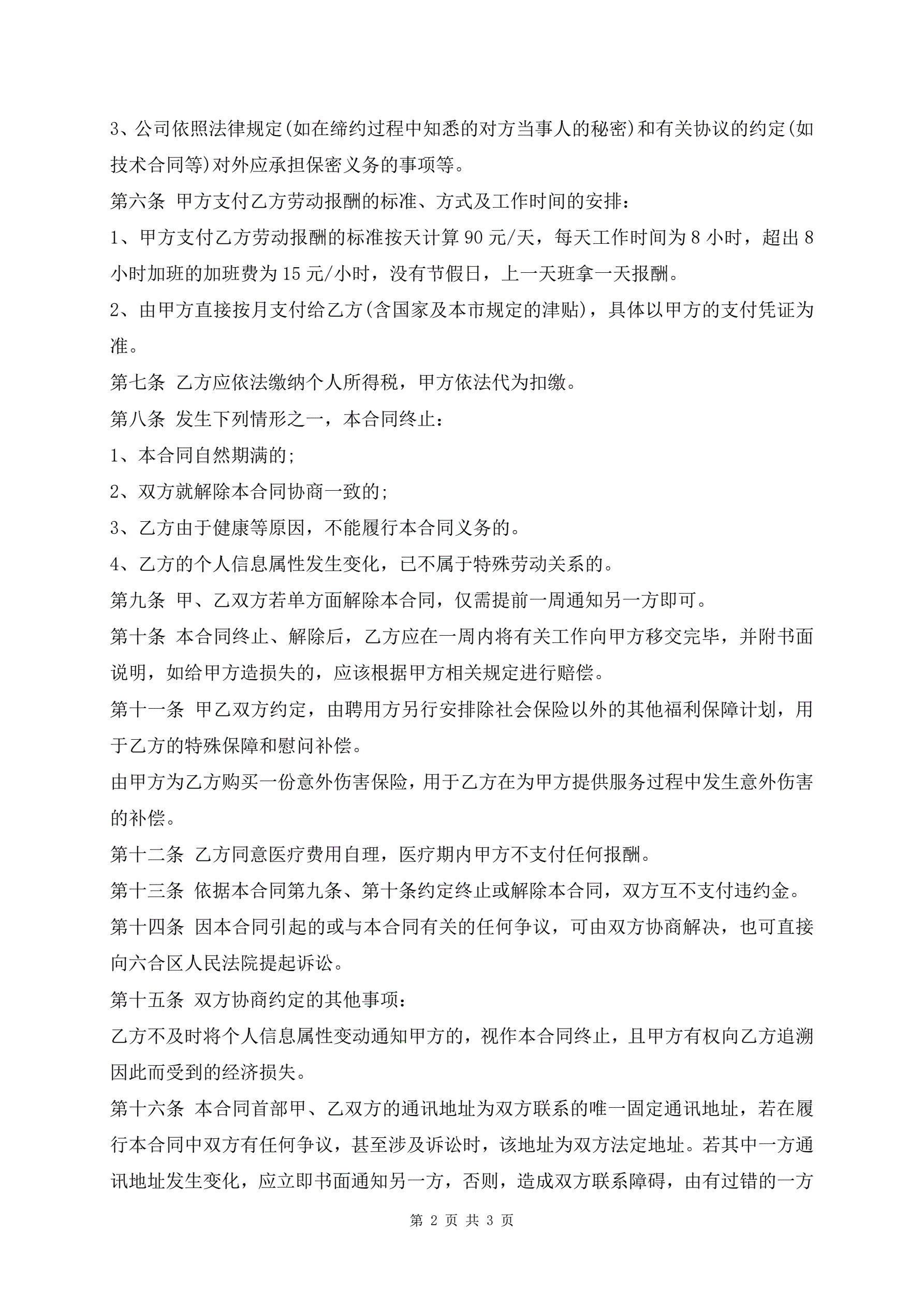 临时用工合同