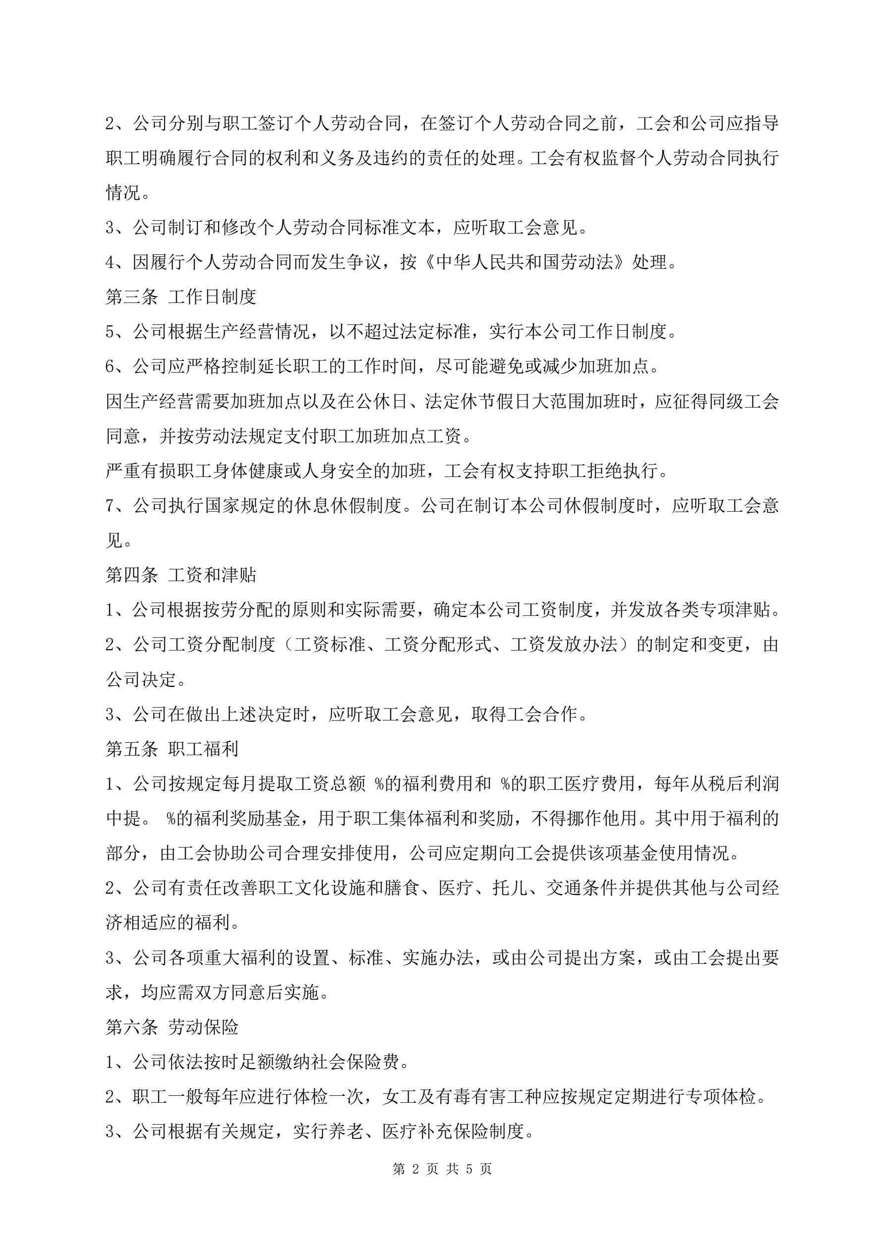 最新集体劳动合同样式