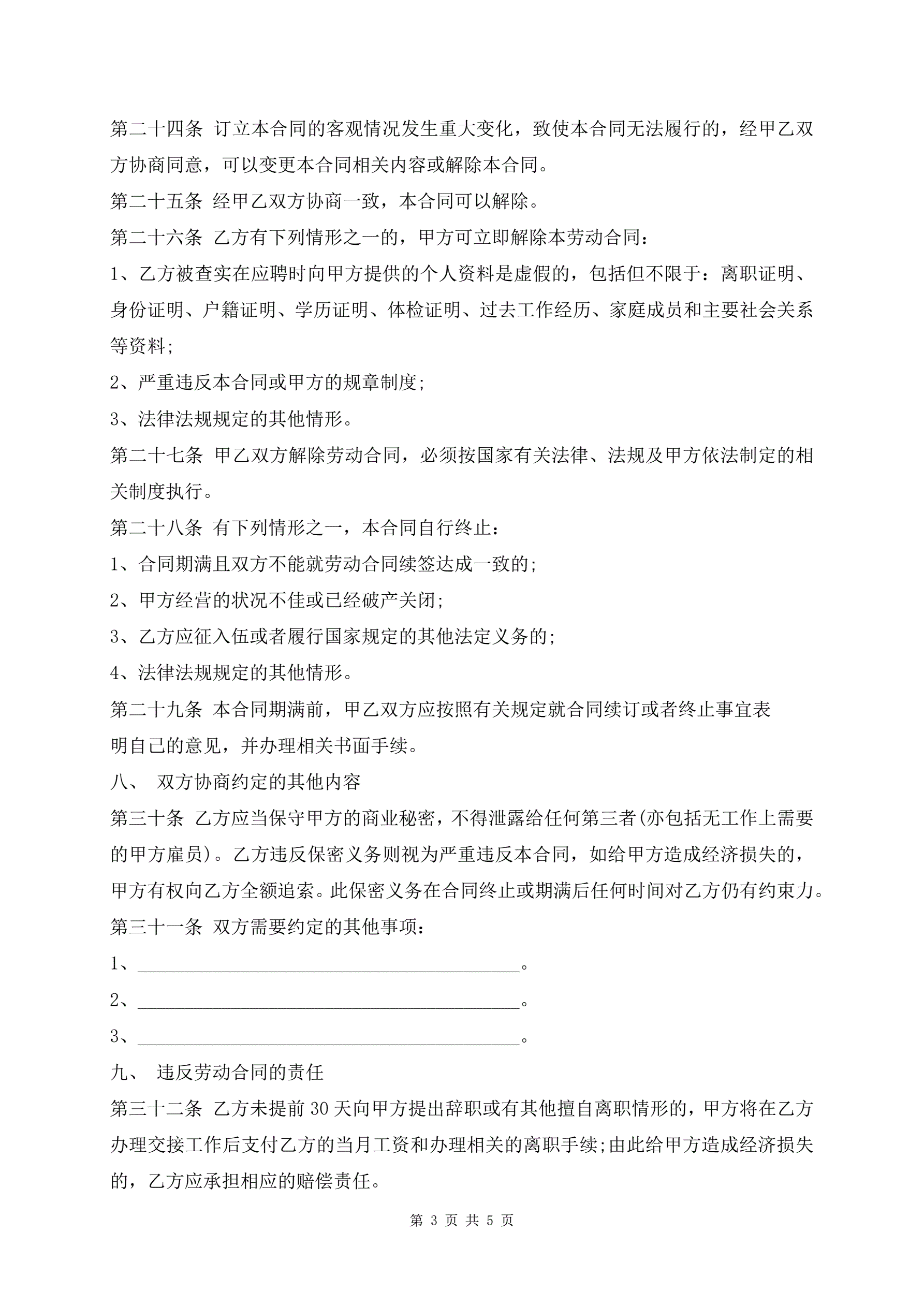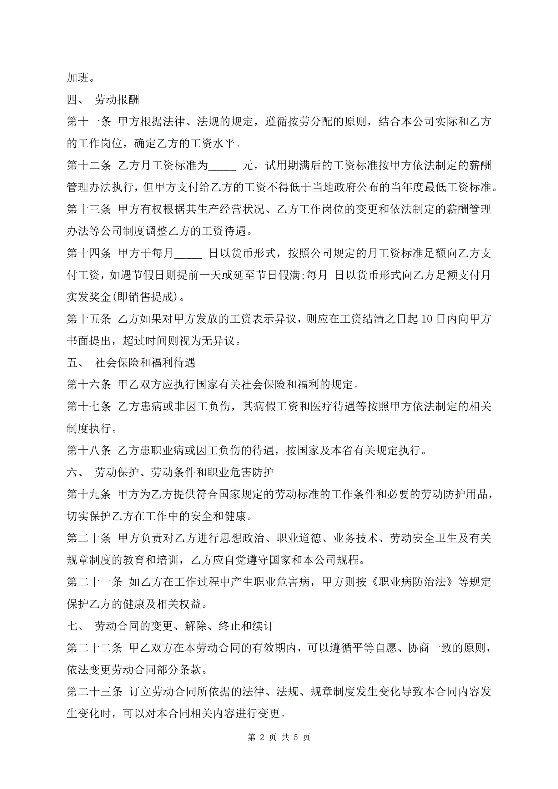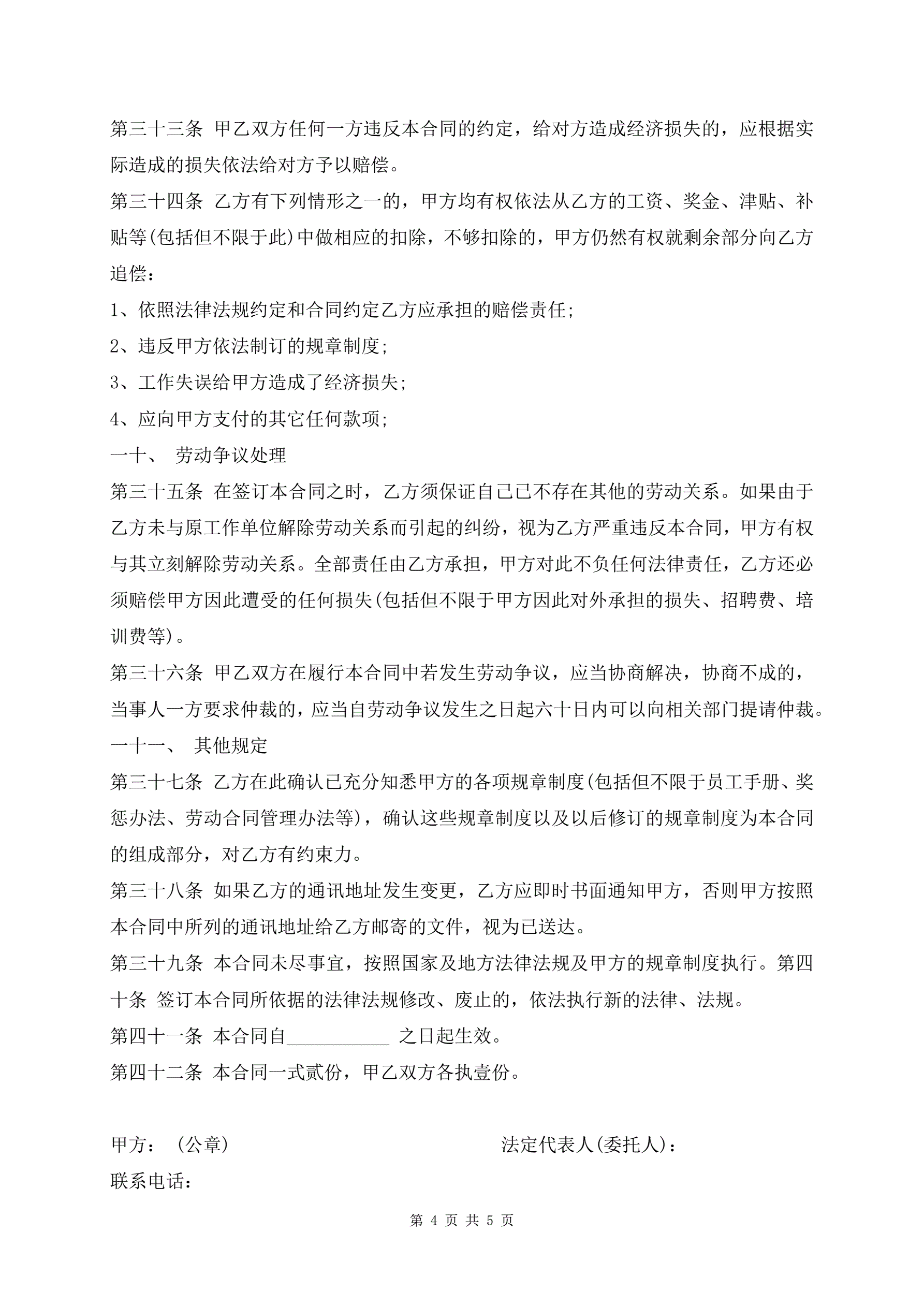最新劳动合同模板
