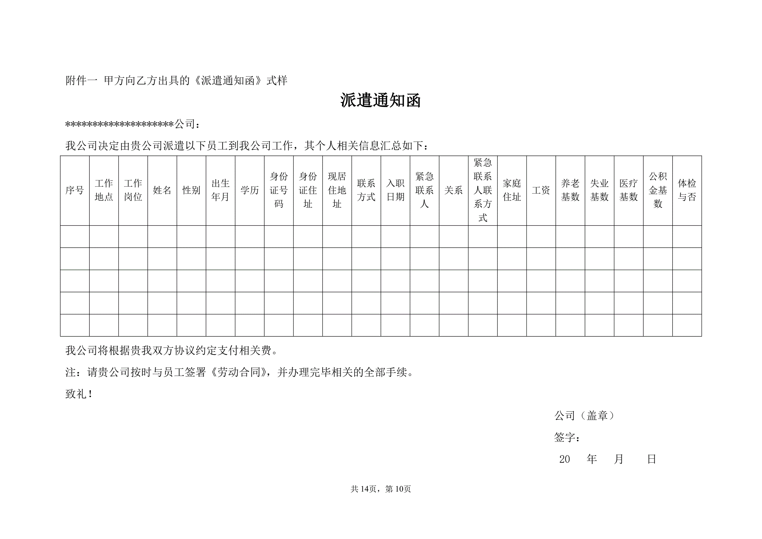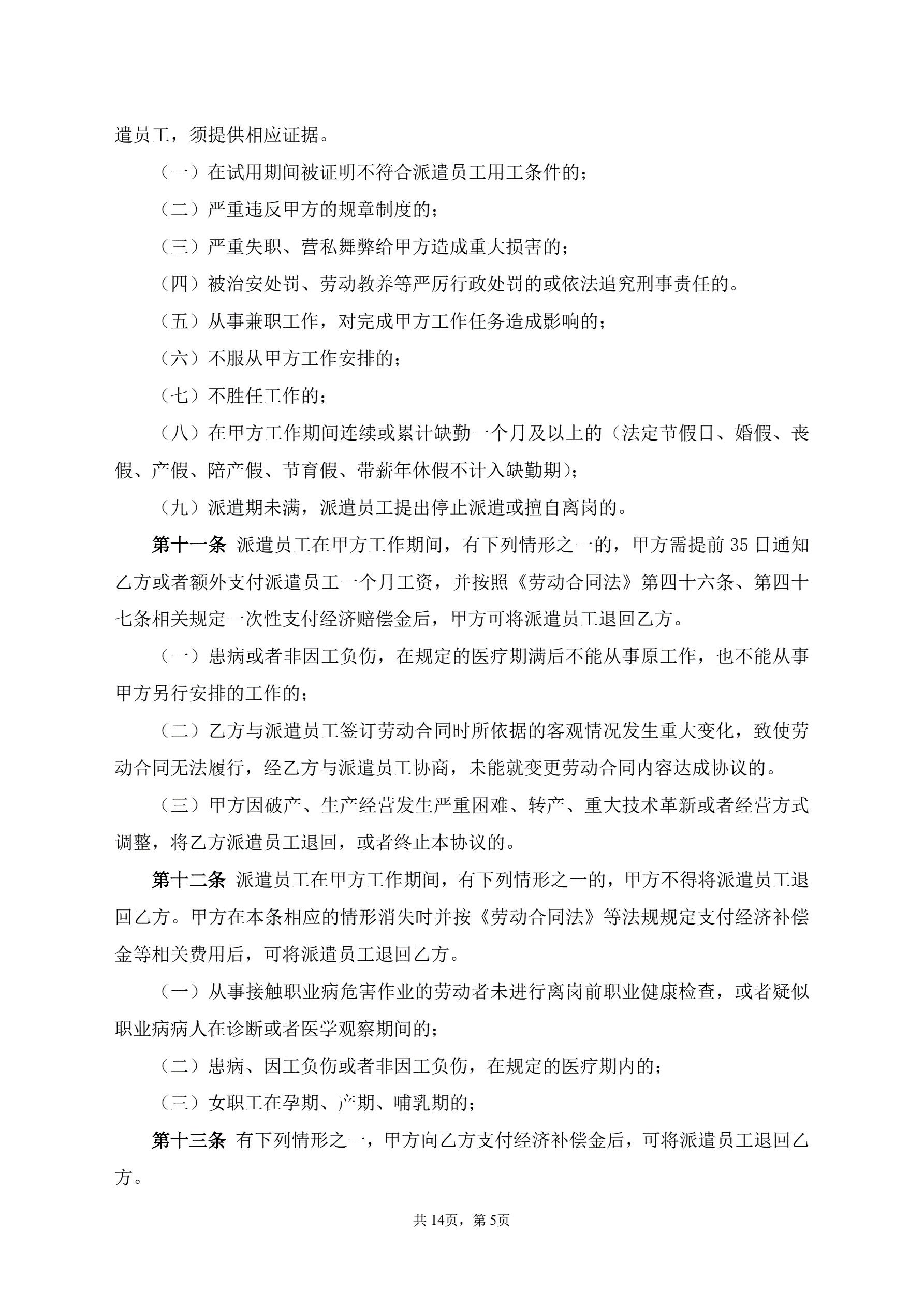 待岗协议