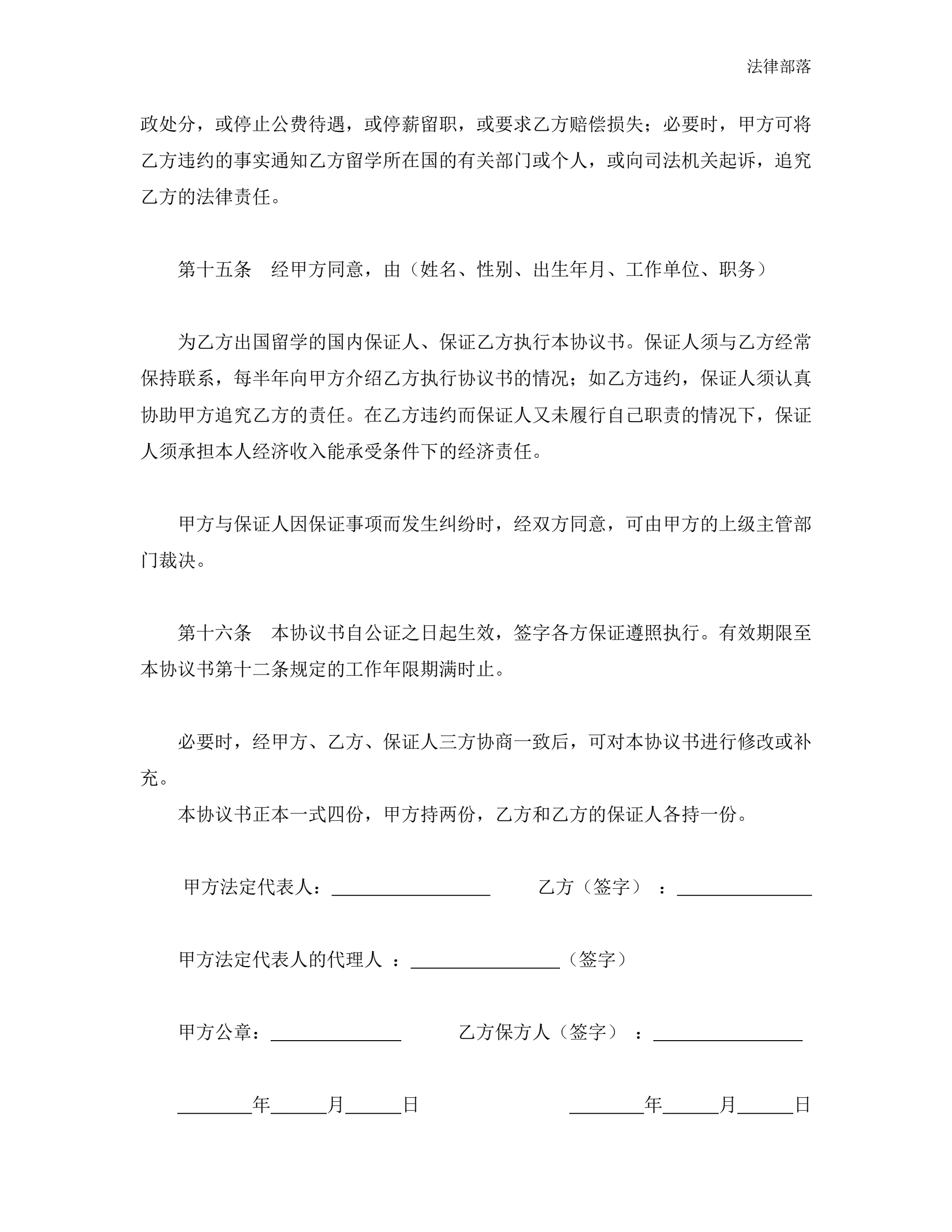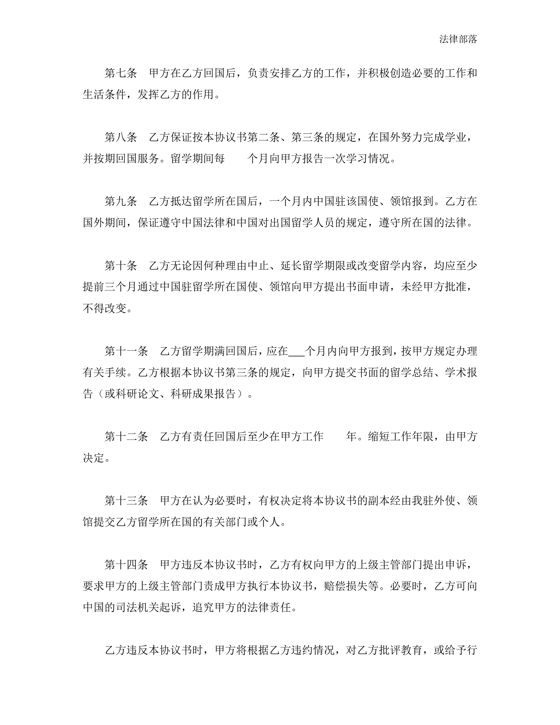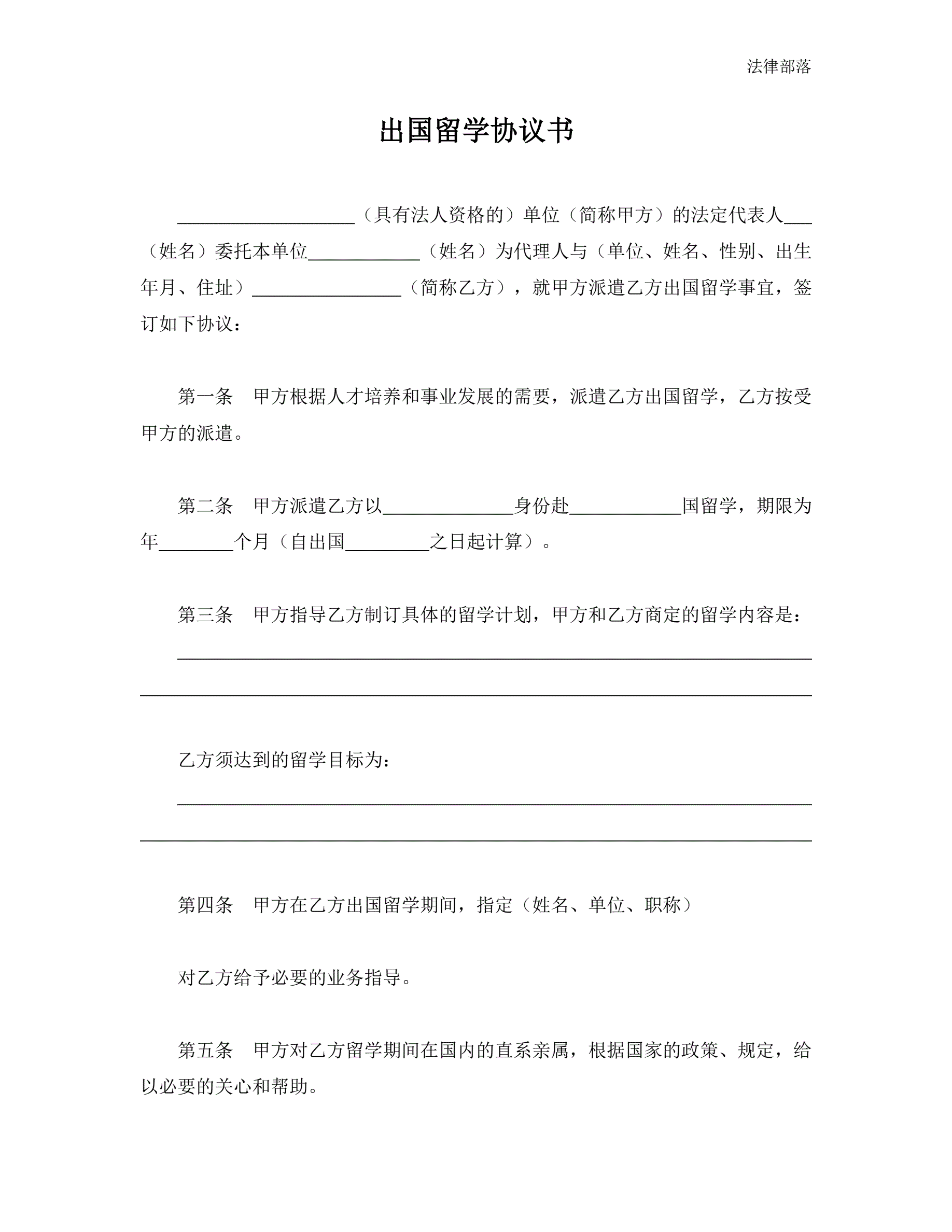 出国留学协议书
