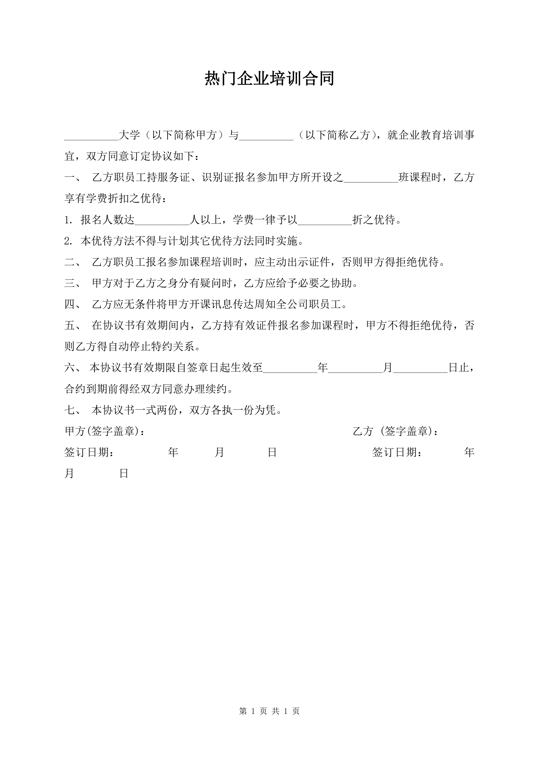 热门企业培训合同