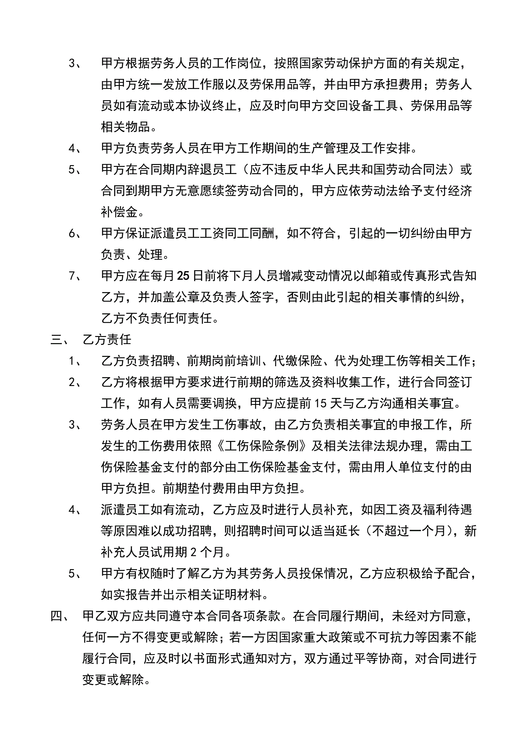 劳务派遣协议样本