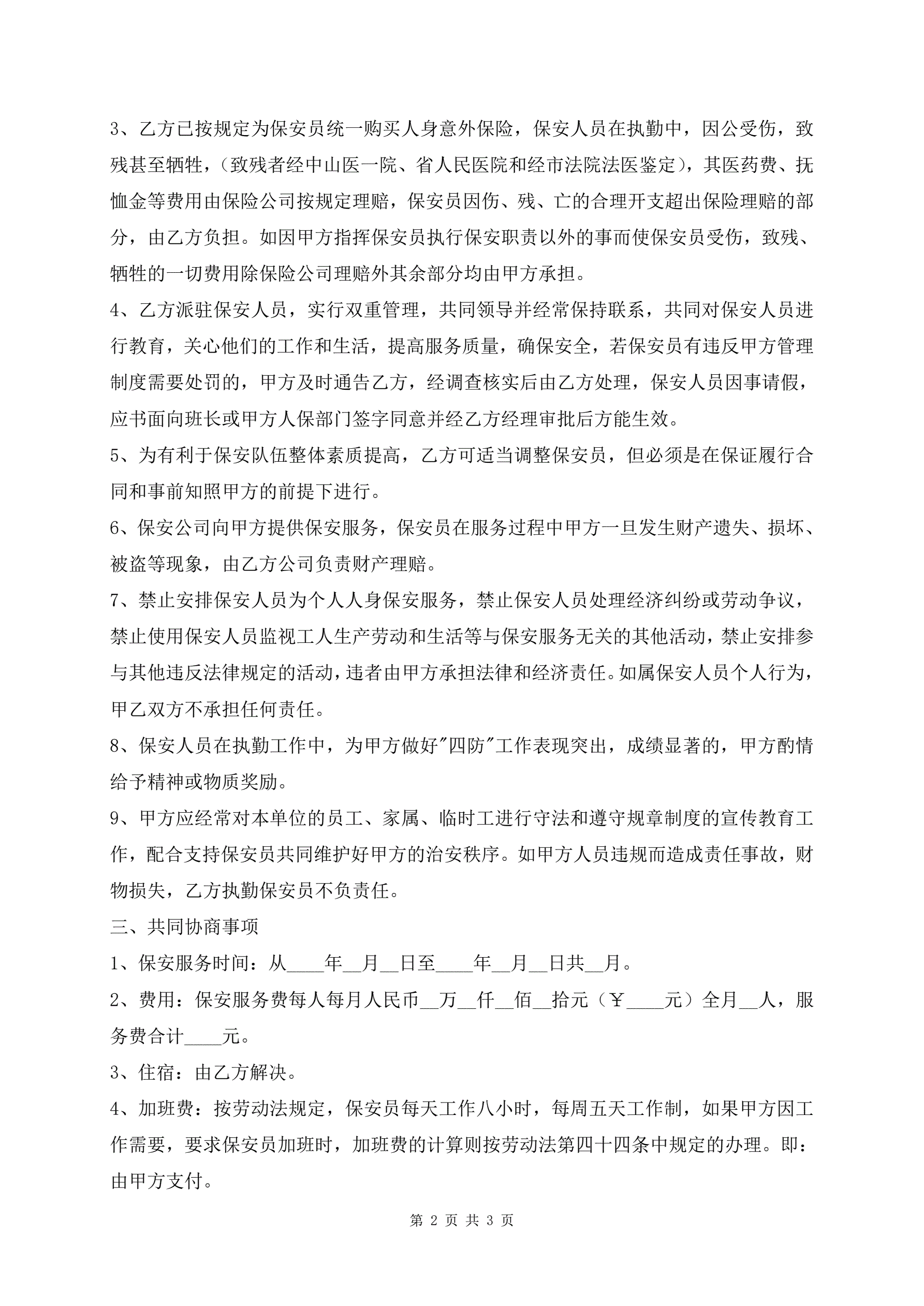 聘请保安服务协议书热门版