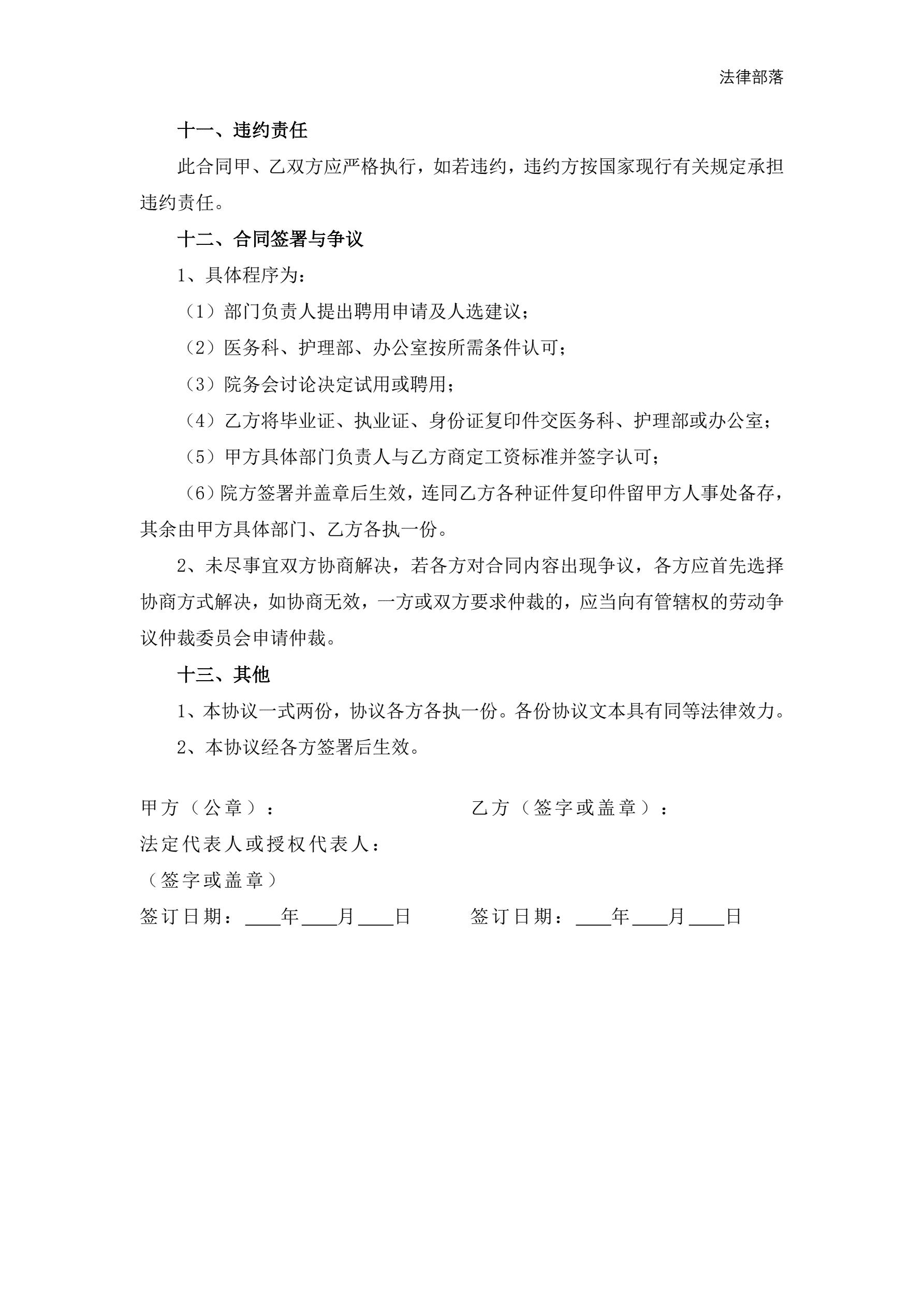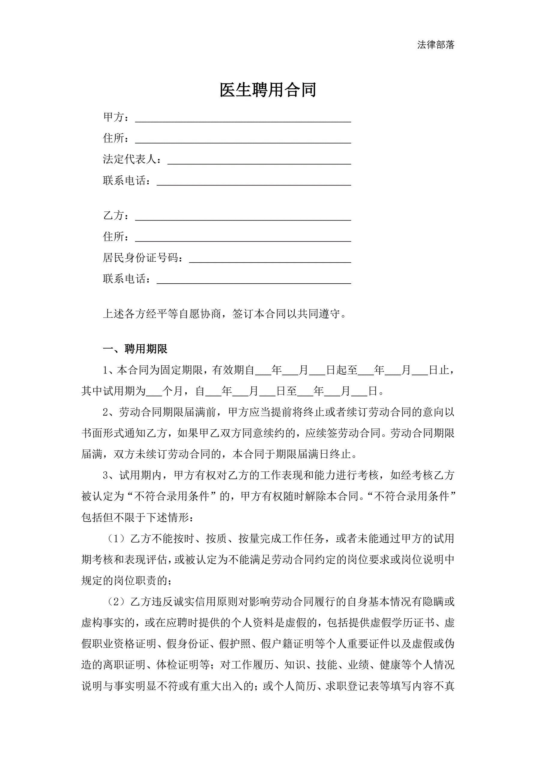 医生聘用合同