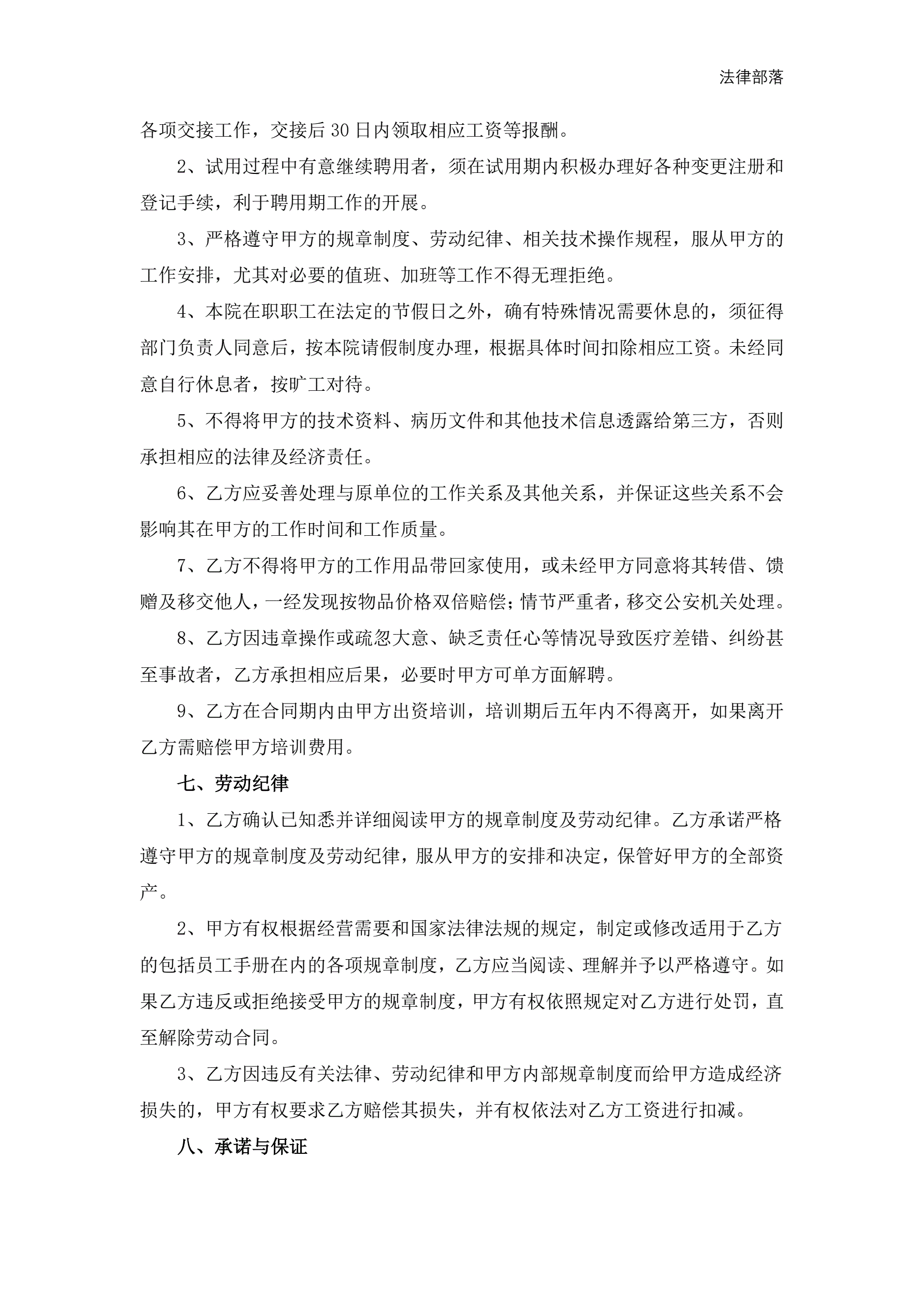 待岗协议