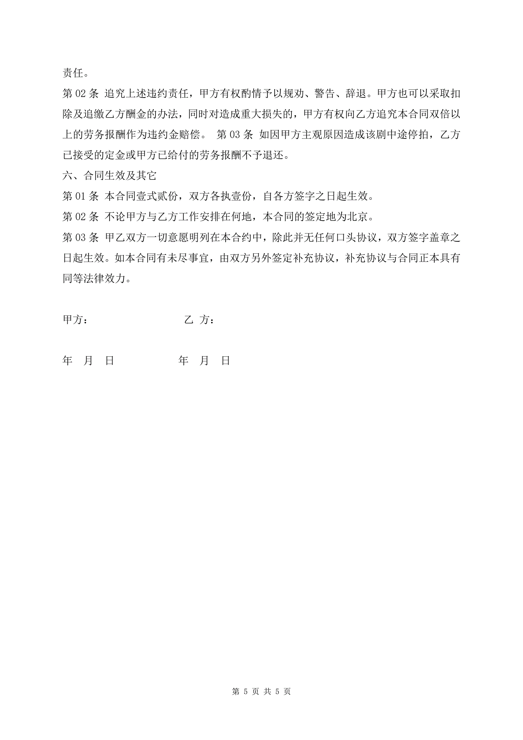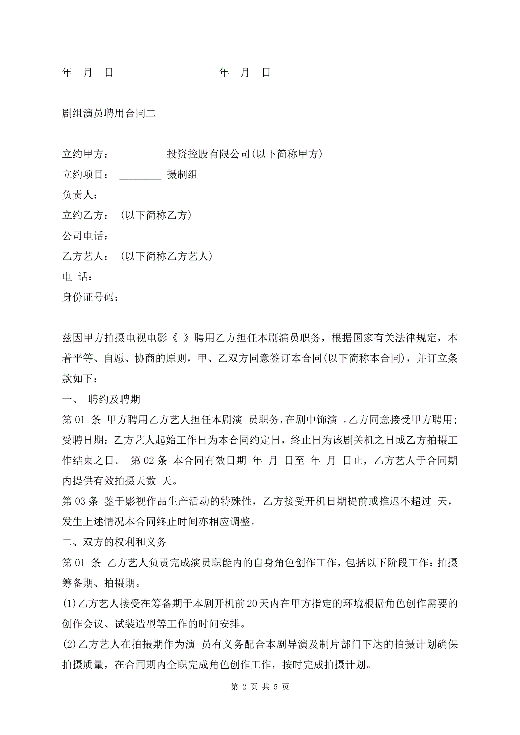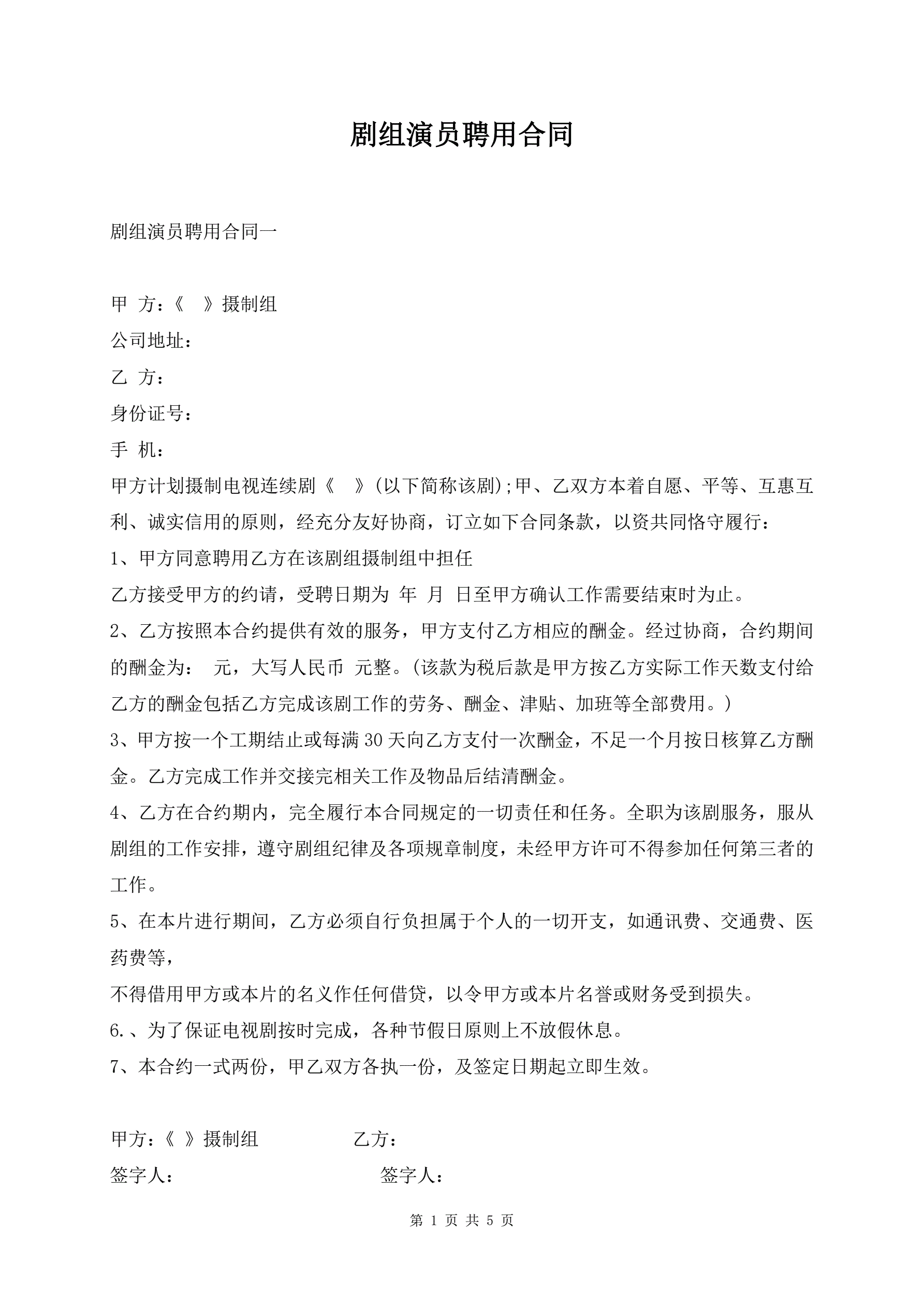 剧组演员聘用合同