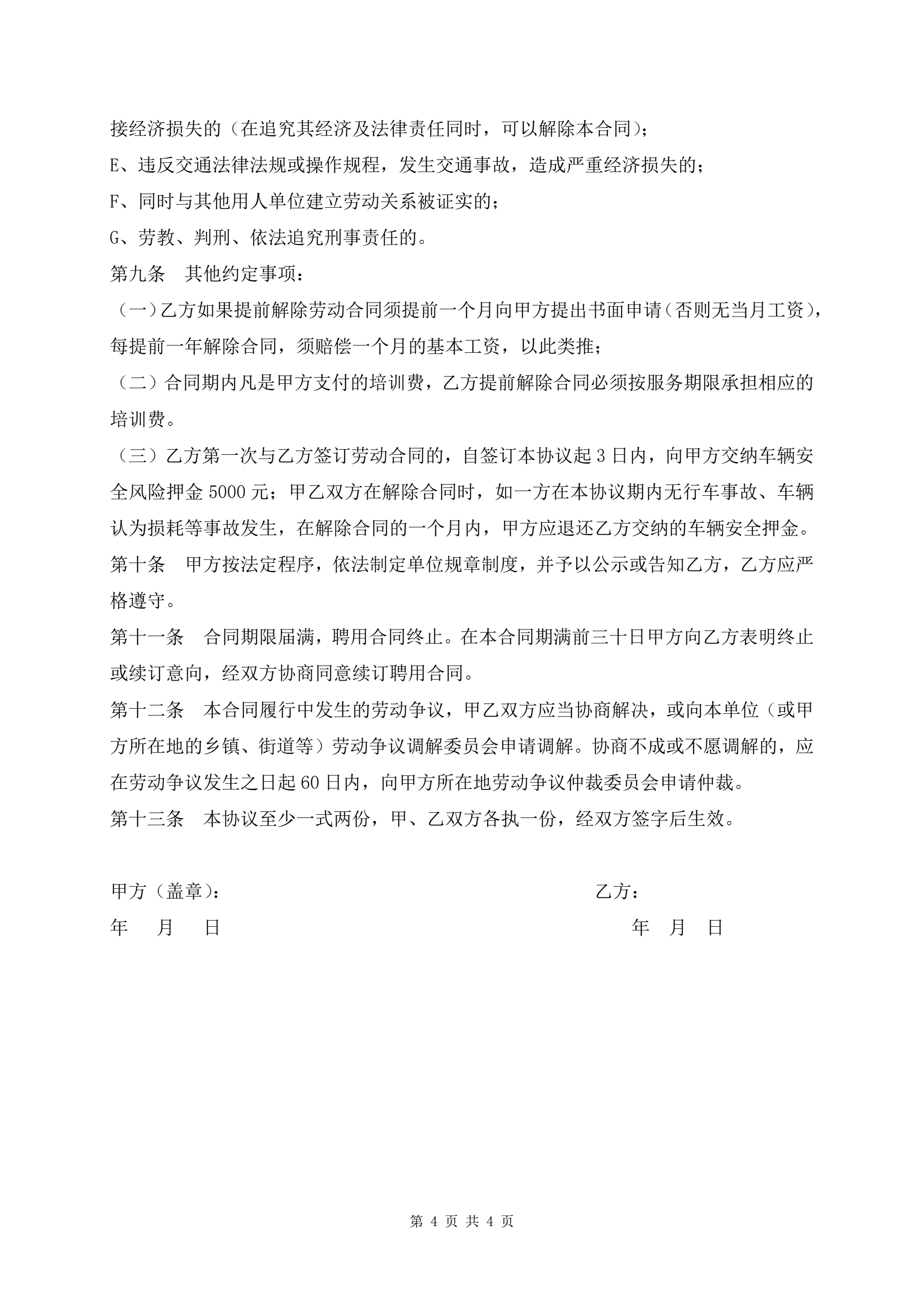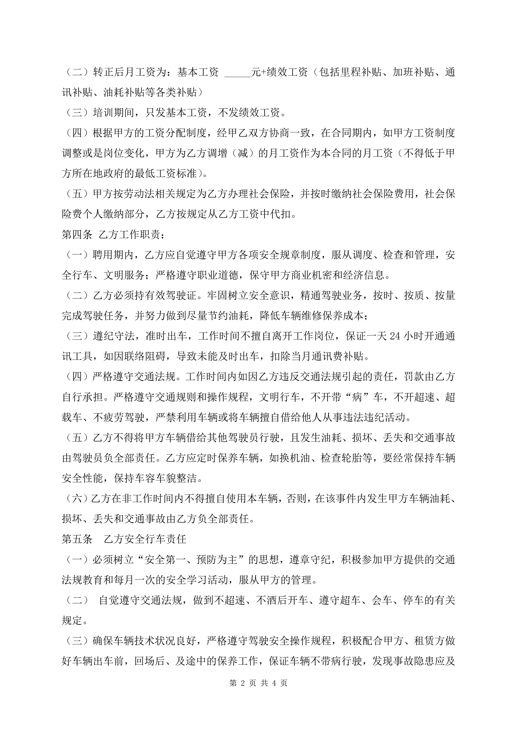 >驾驶员聘用合同范本