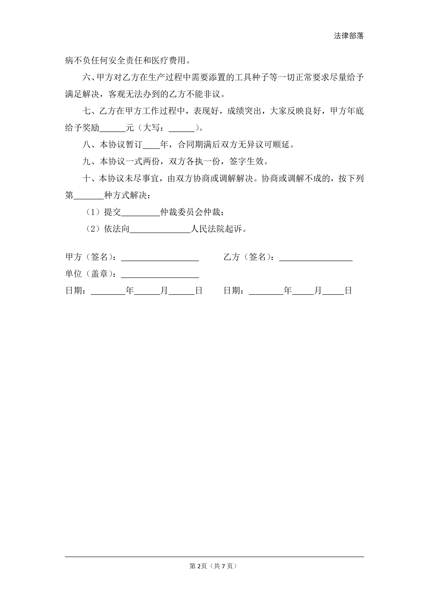 单位清洁临时工(园丁)聘用协议书