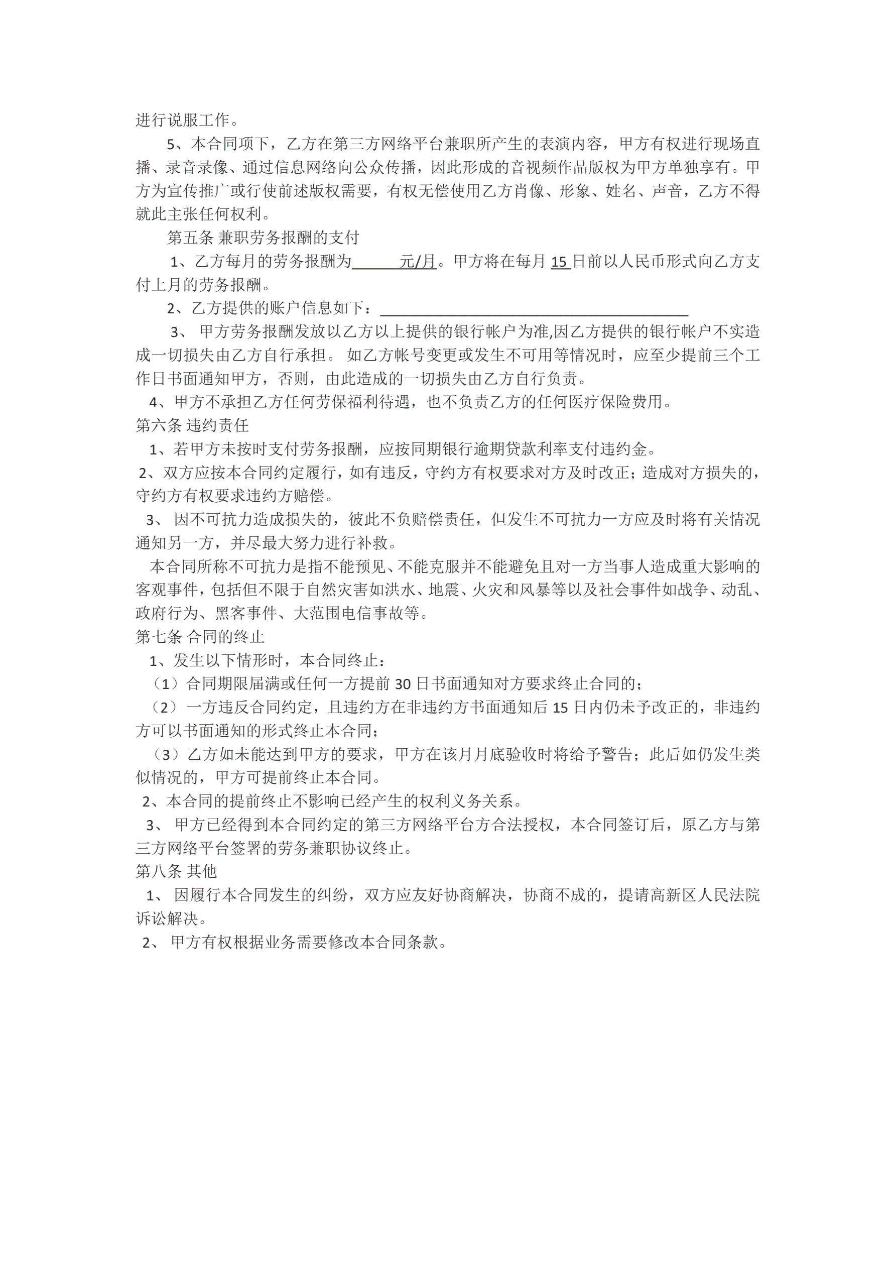 主播兼职合同