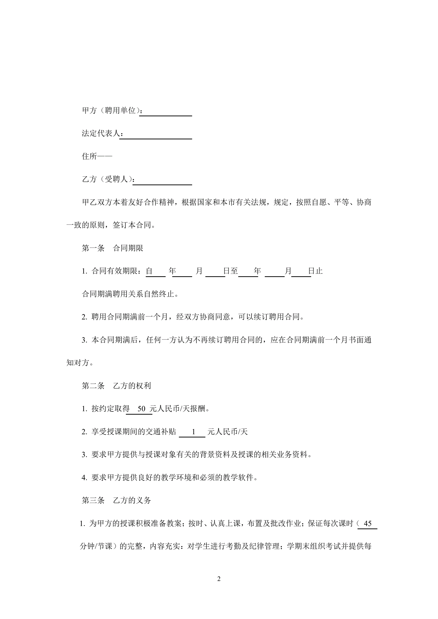 聘用合同