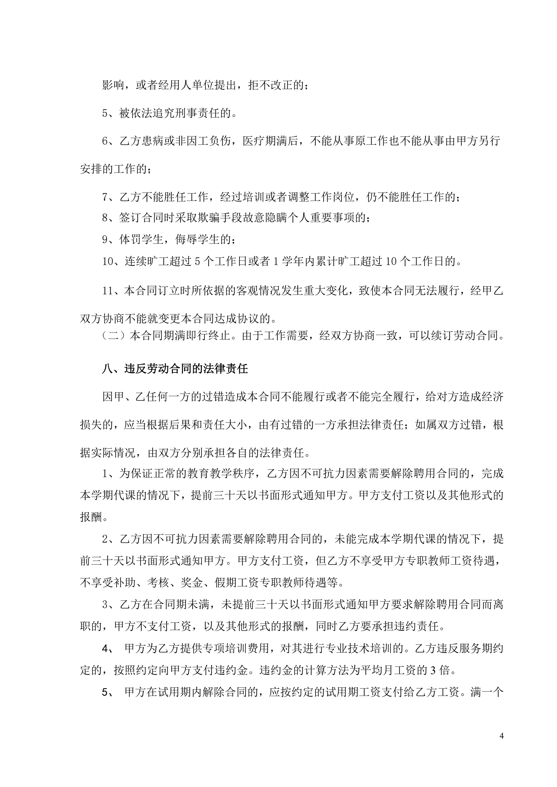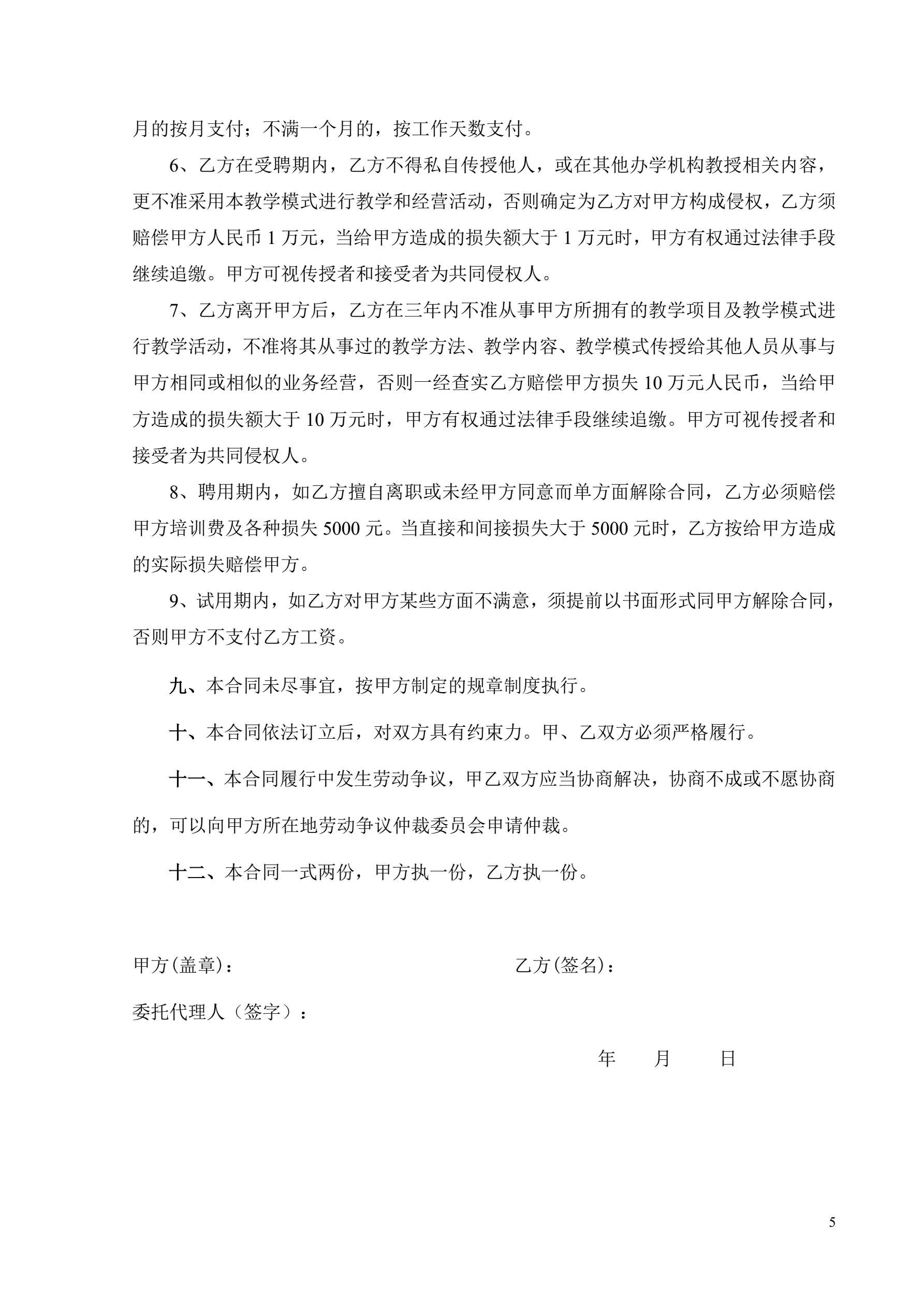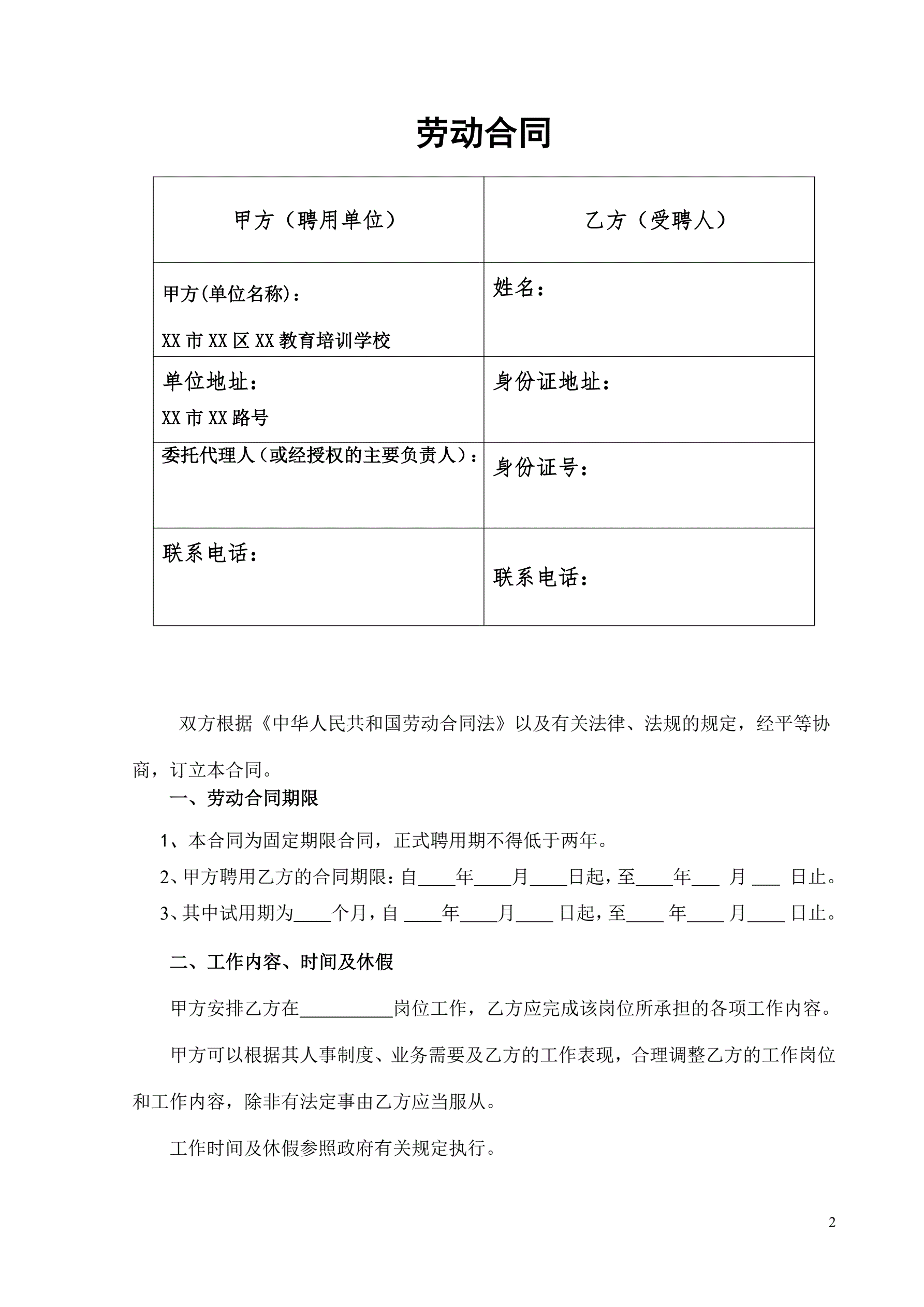 教育培训机构劳动合同