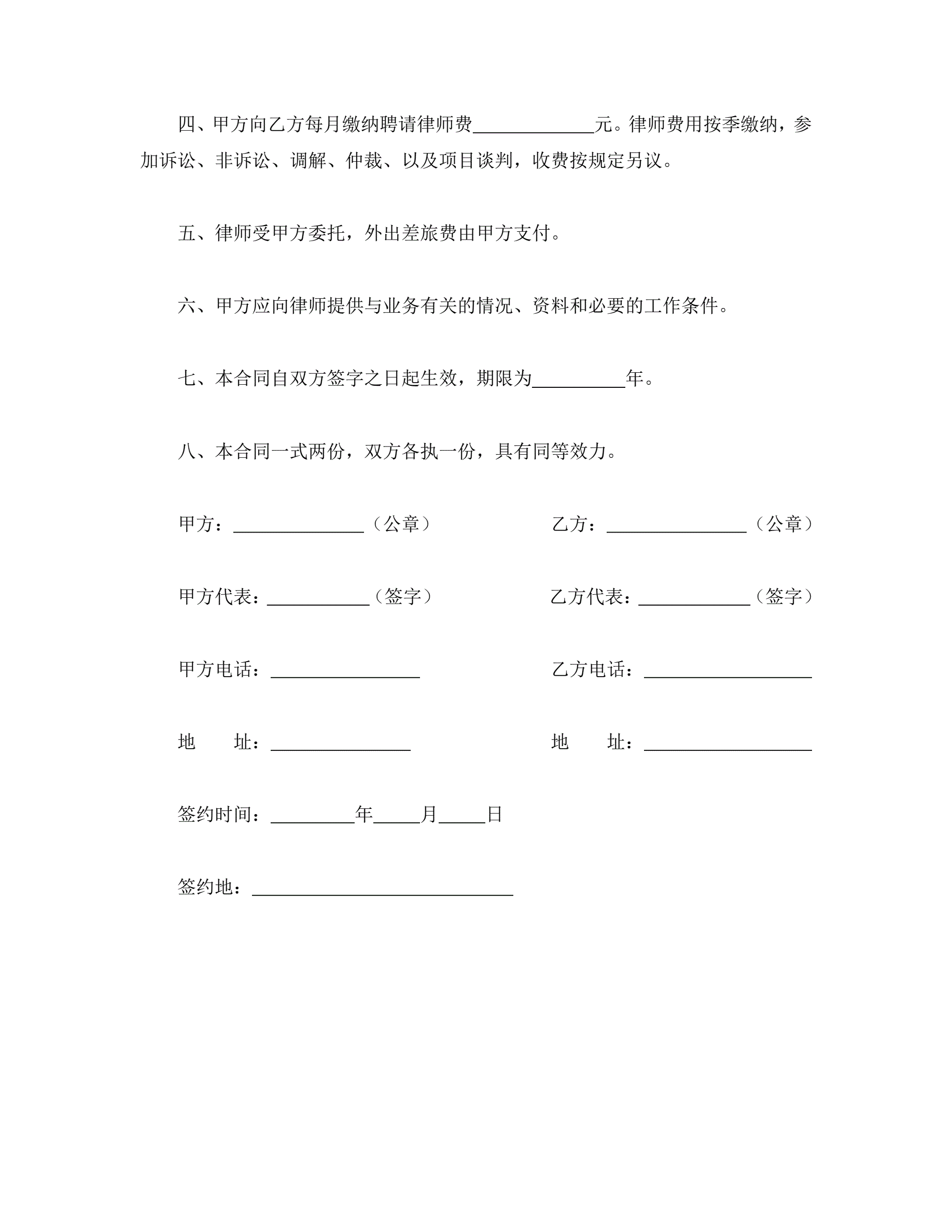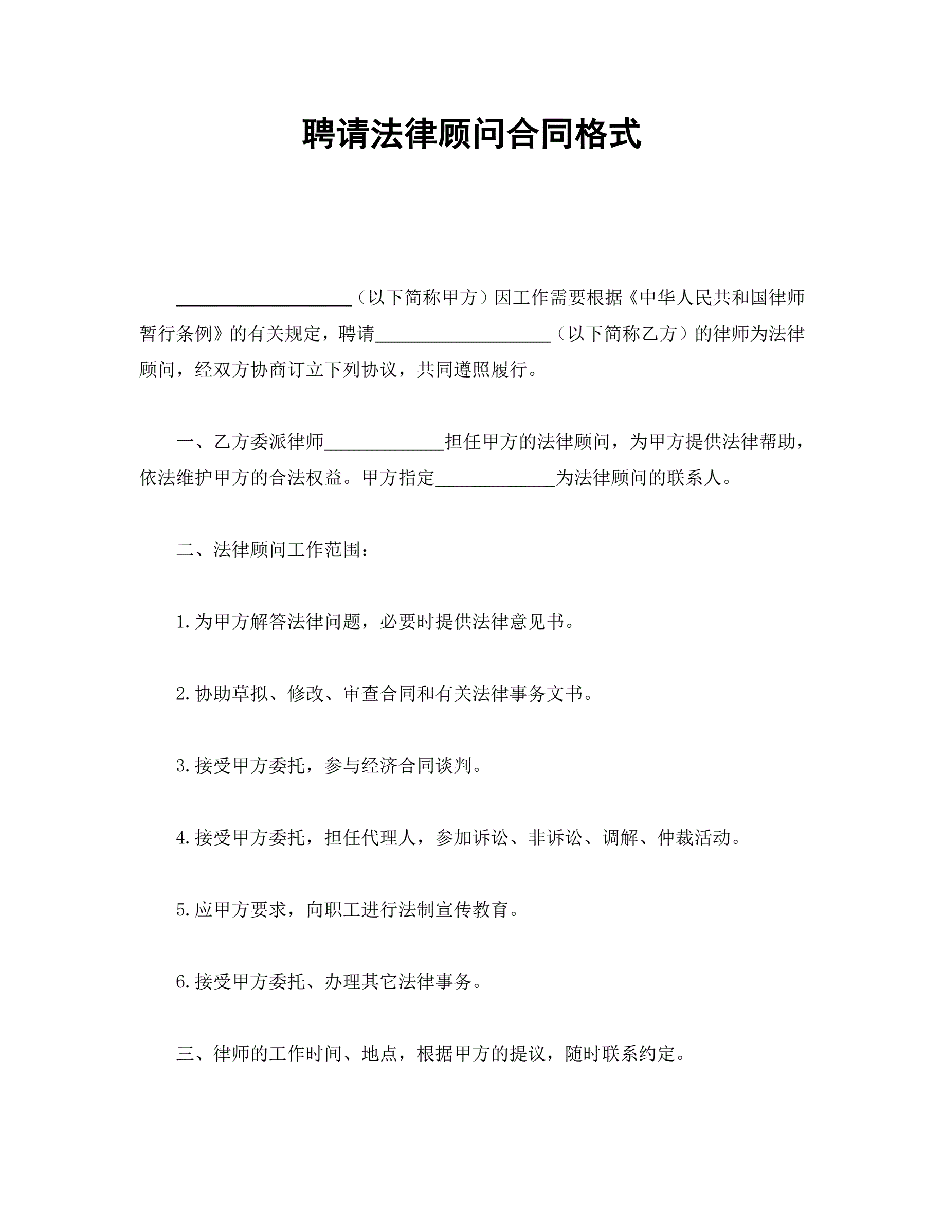 合同名称:聘请法律顾问合同格式