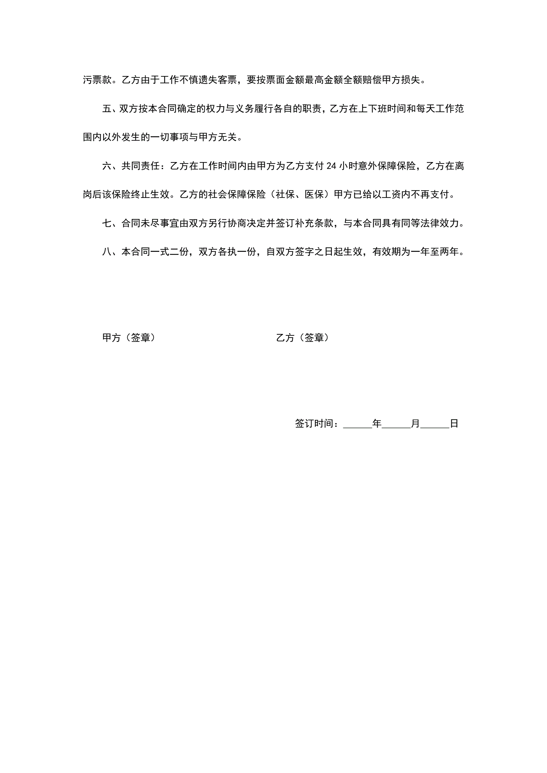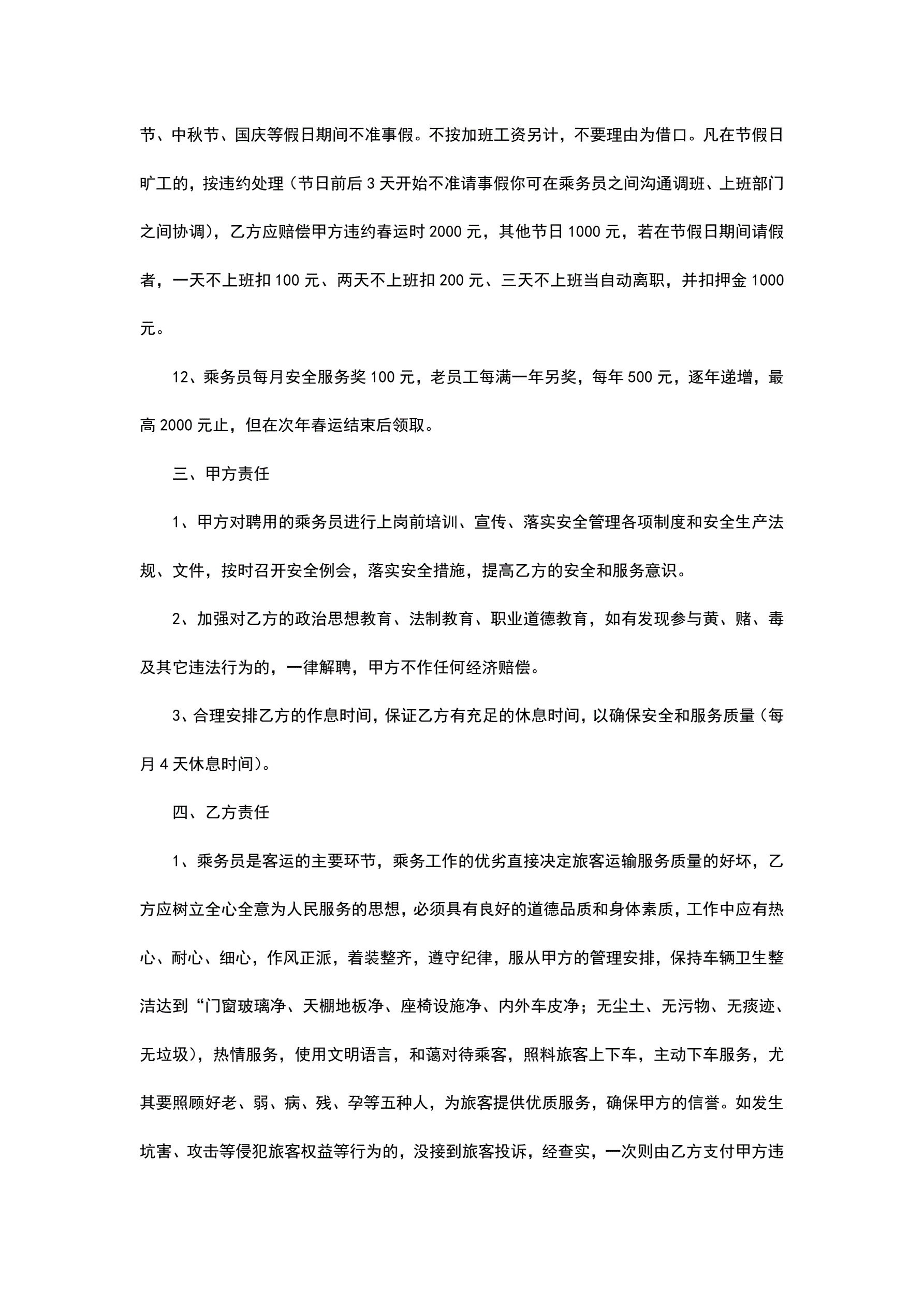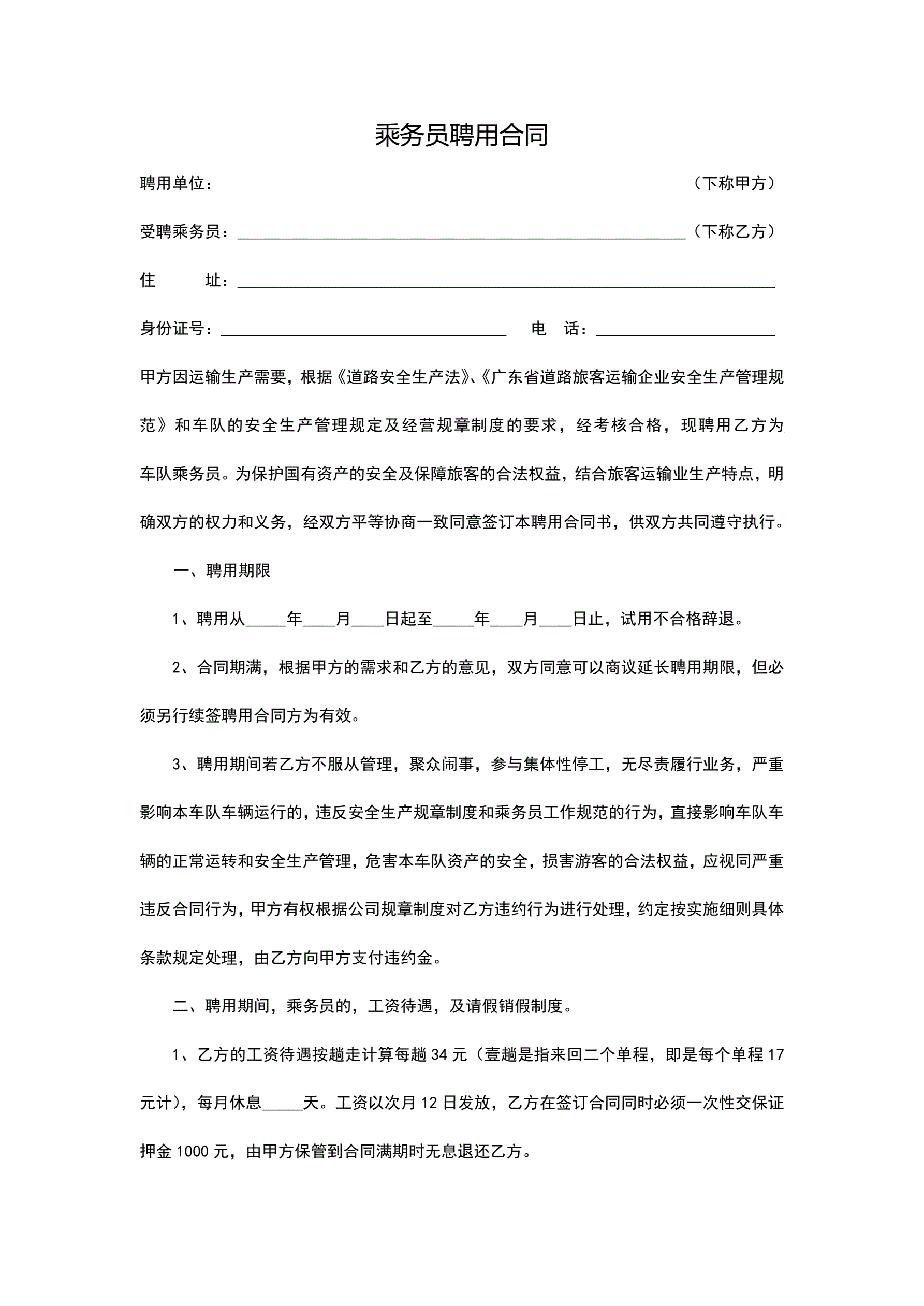乘务员聘用合同