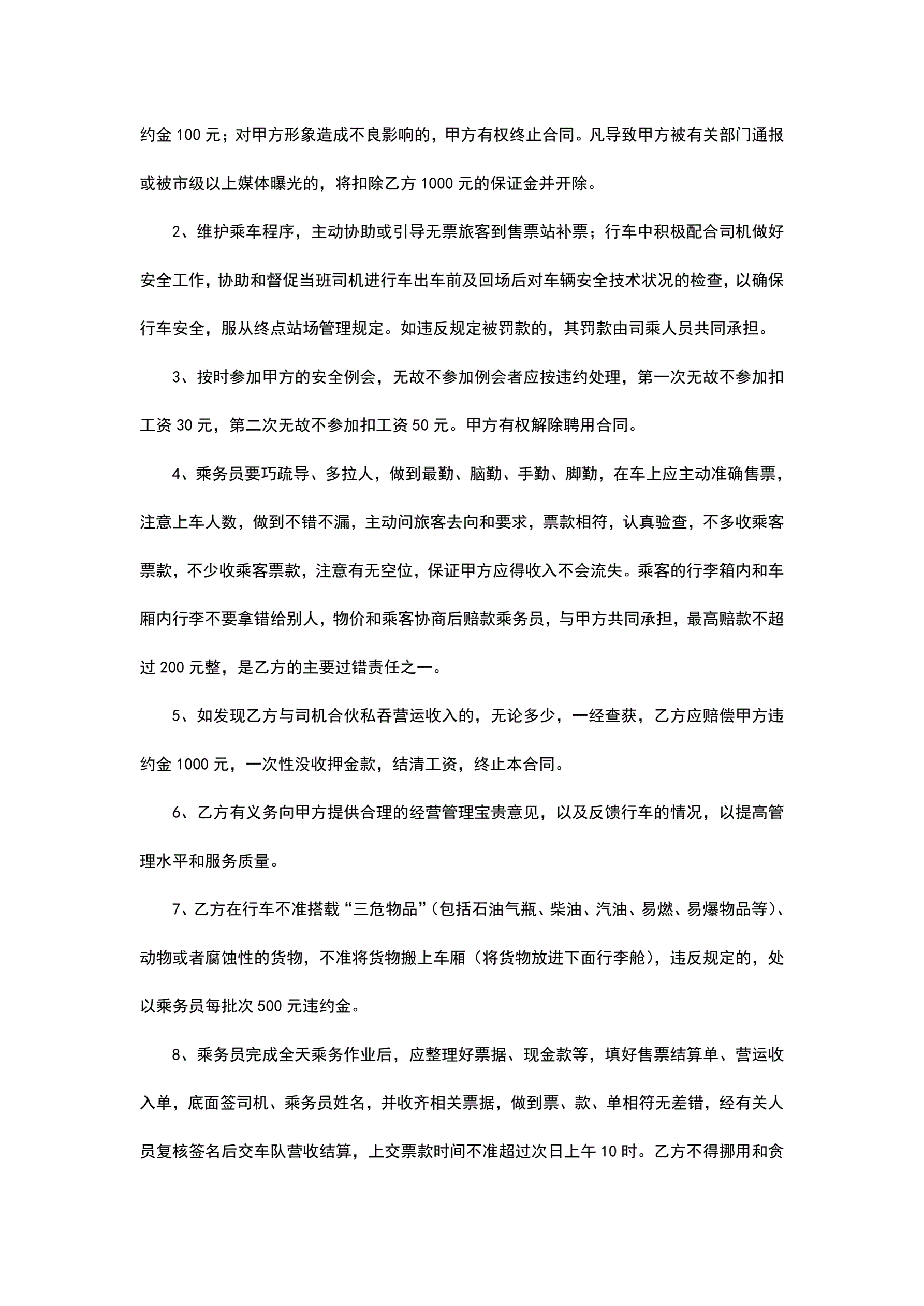 >乘务员聘用合同