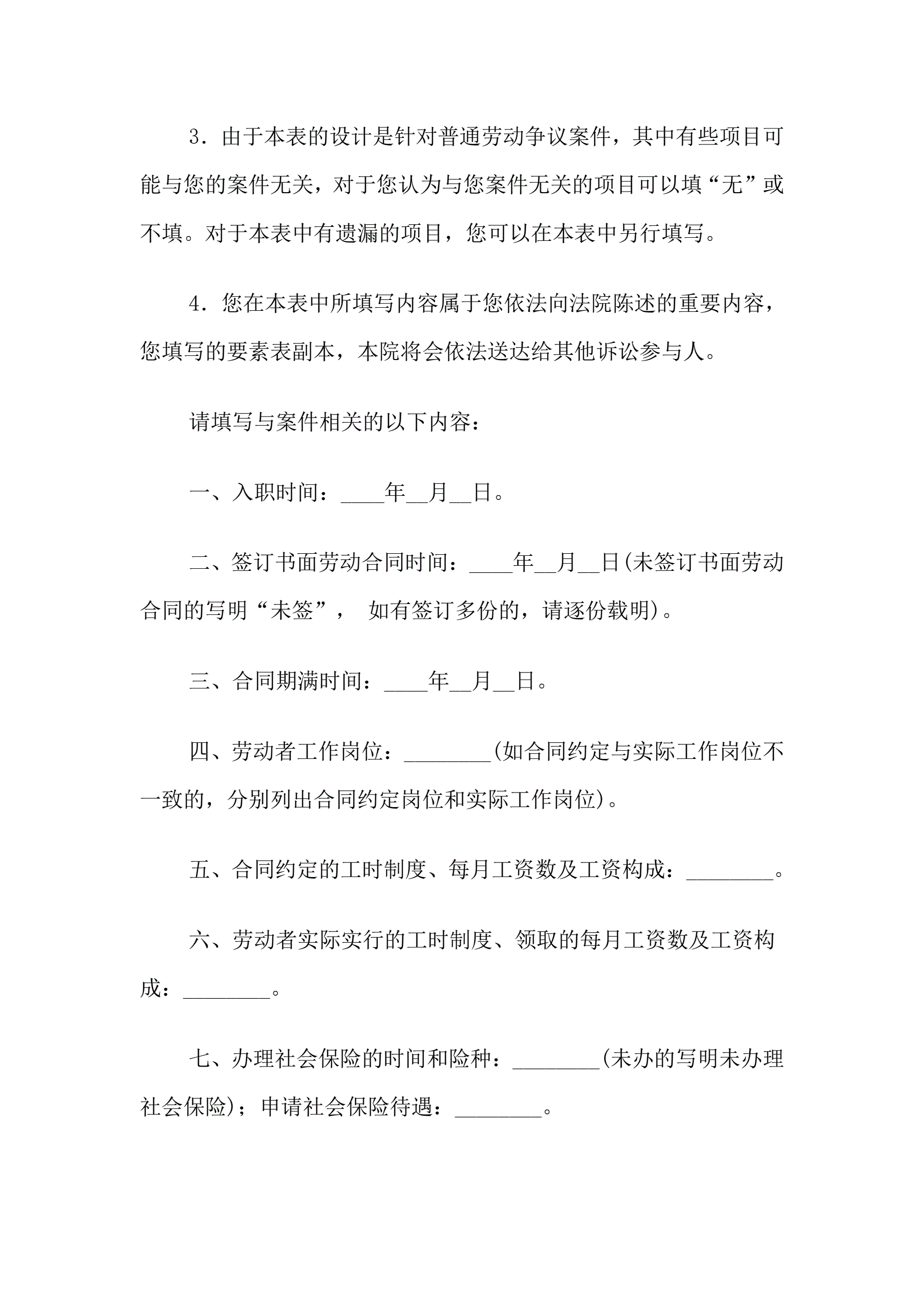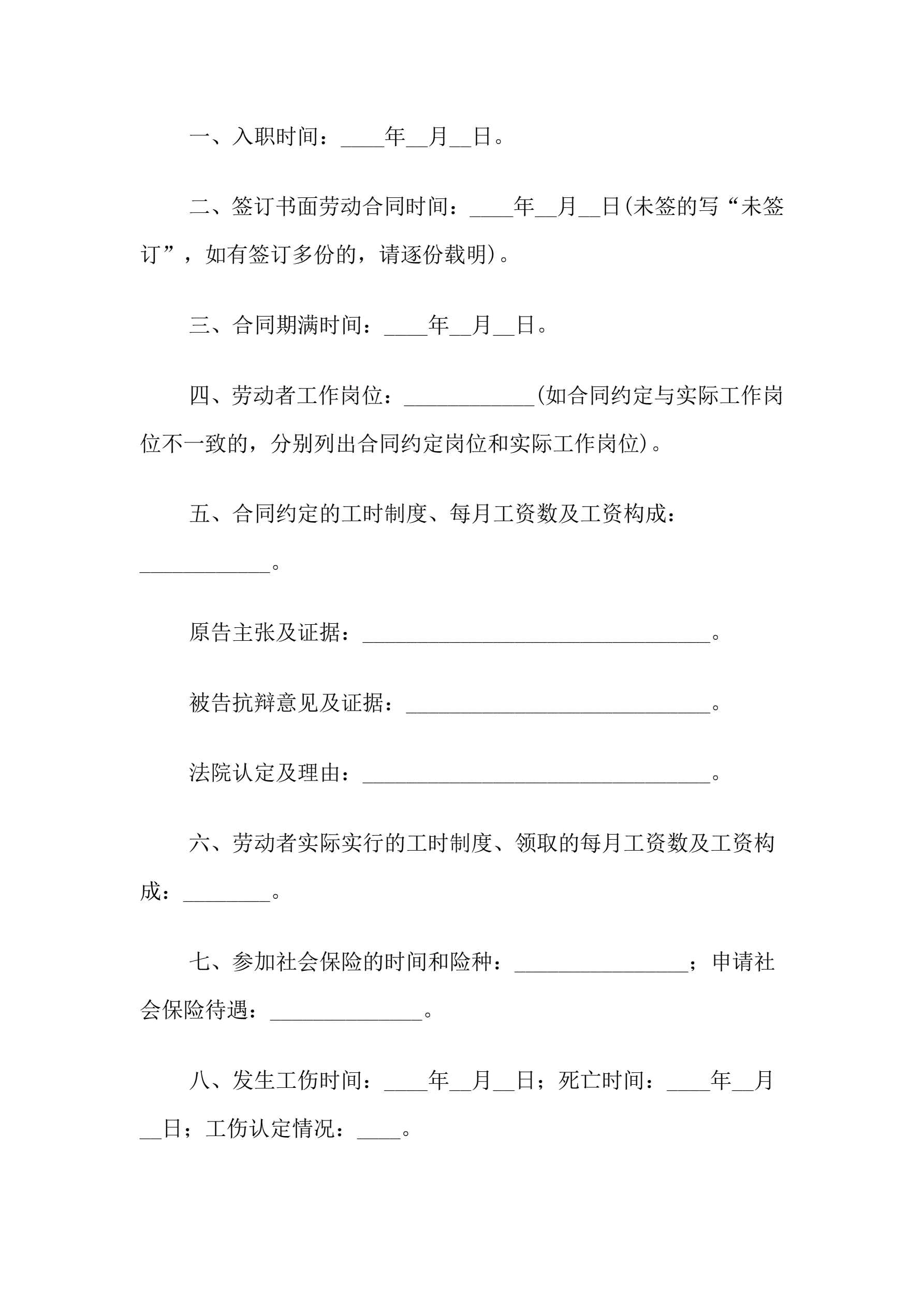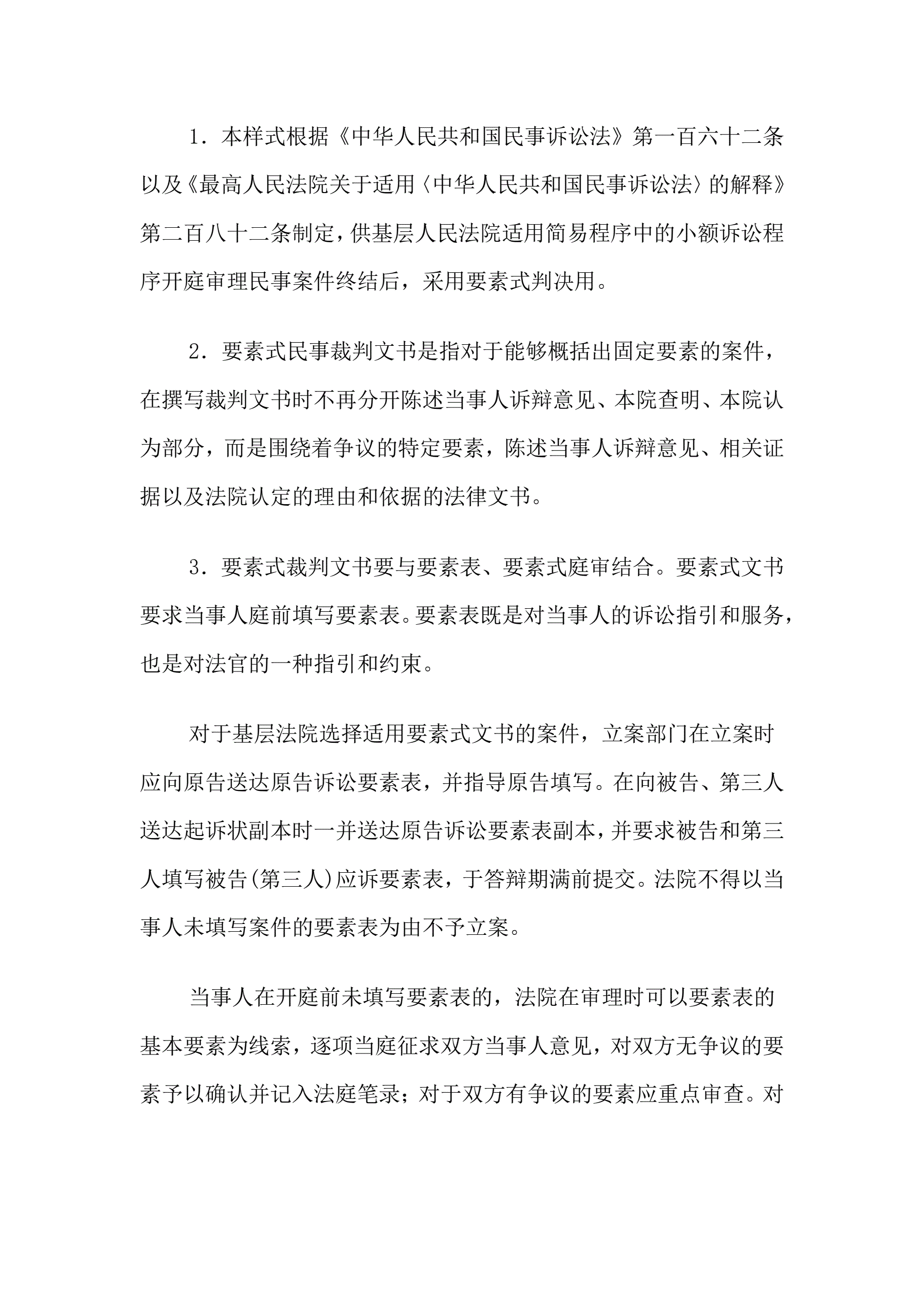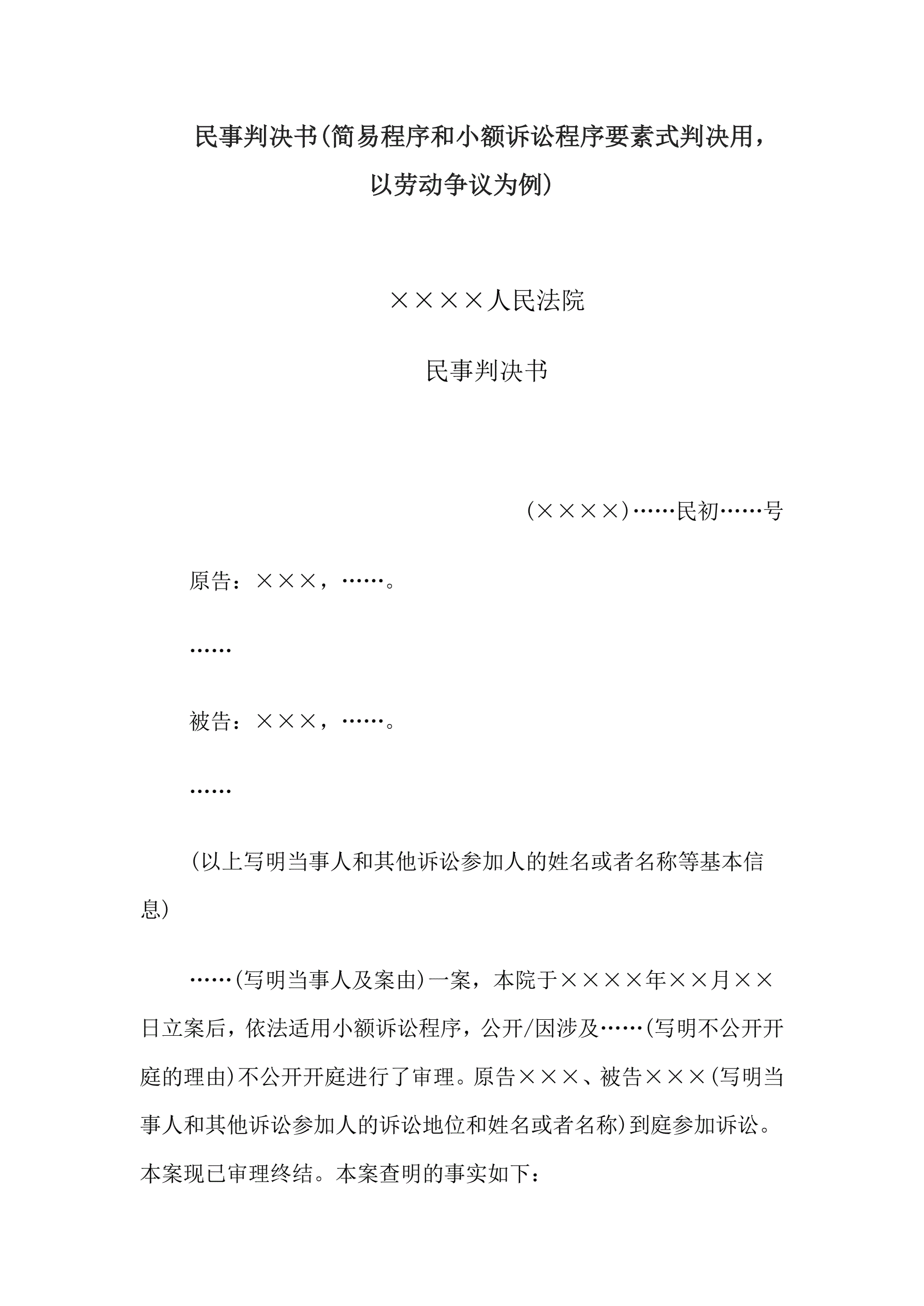 民事判决书(简易程序和小额诉讼程序要素式判决用,以劳动争议为例)
