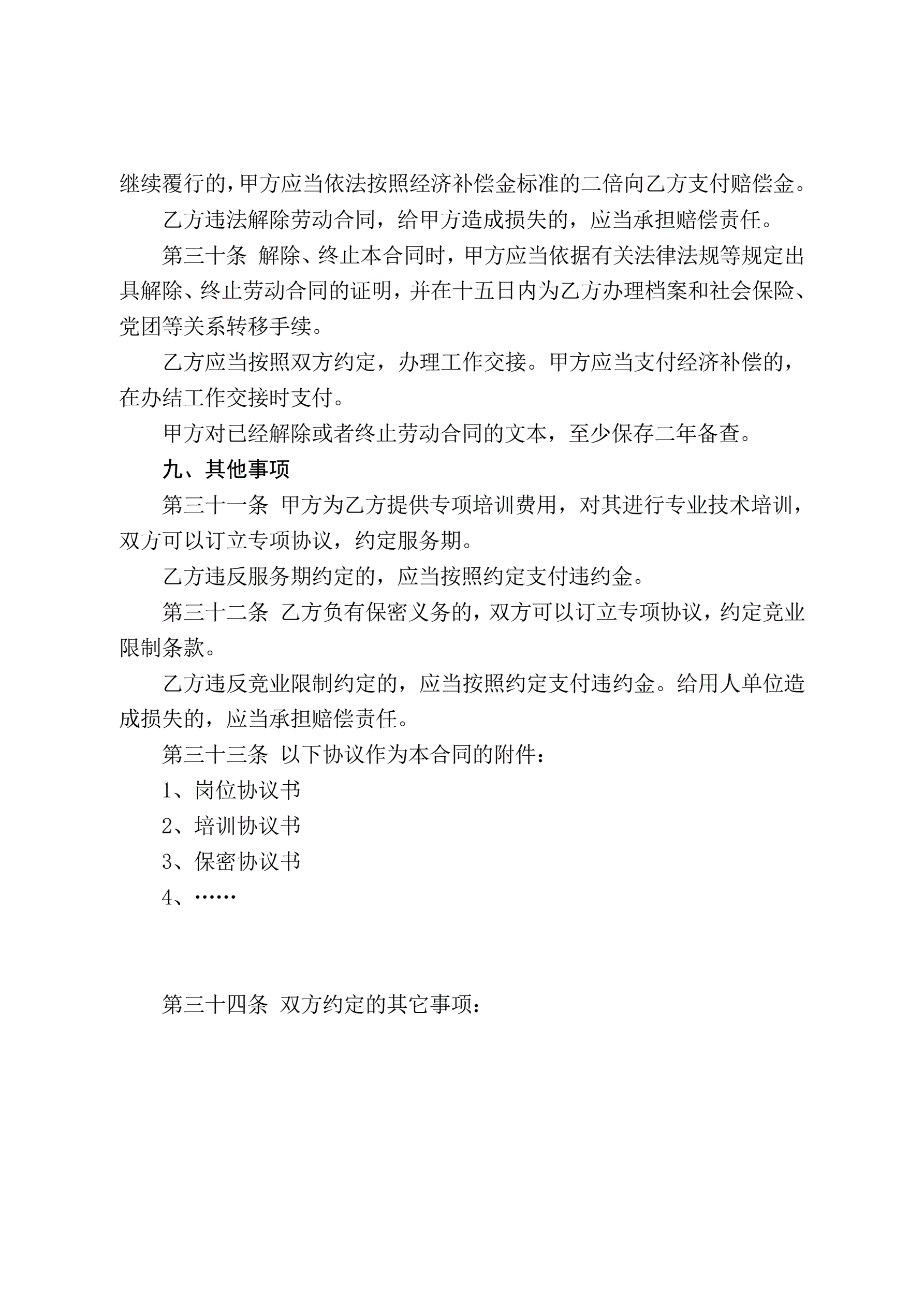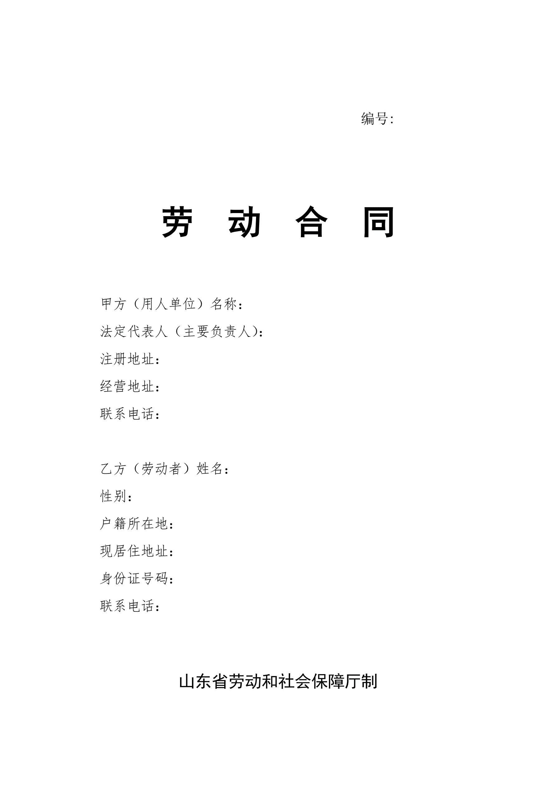 山东省劳动合同含附表