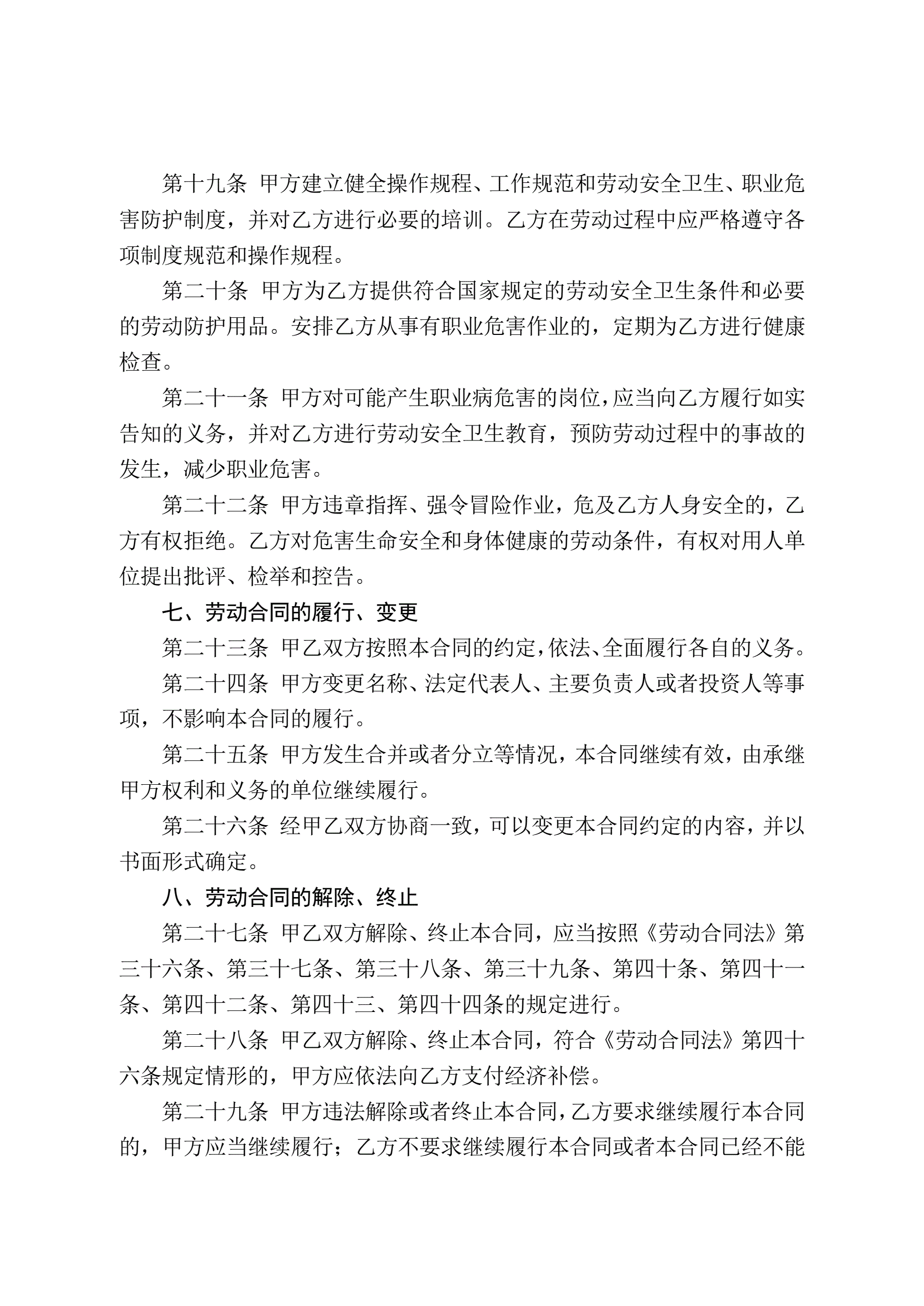 >山东省劳动合同含附表