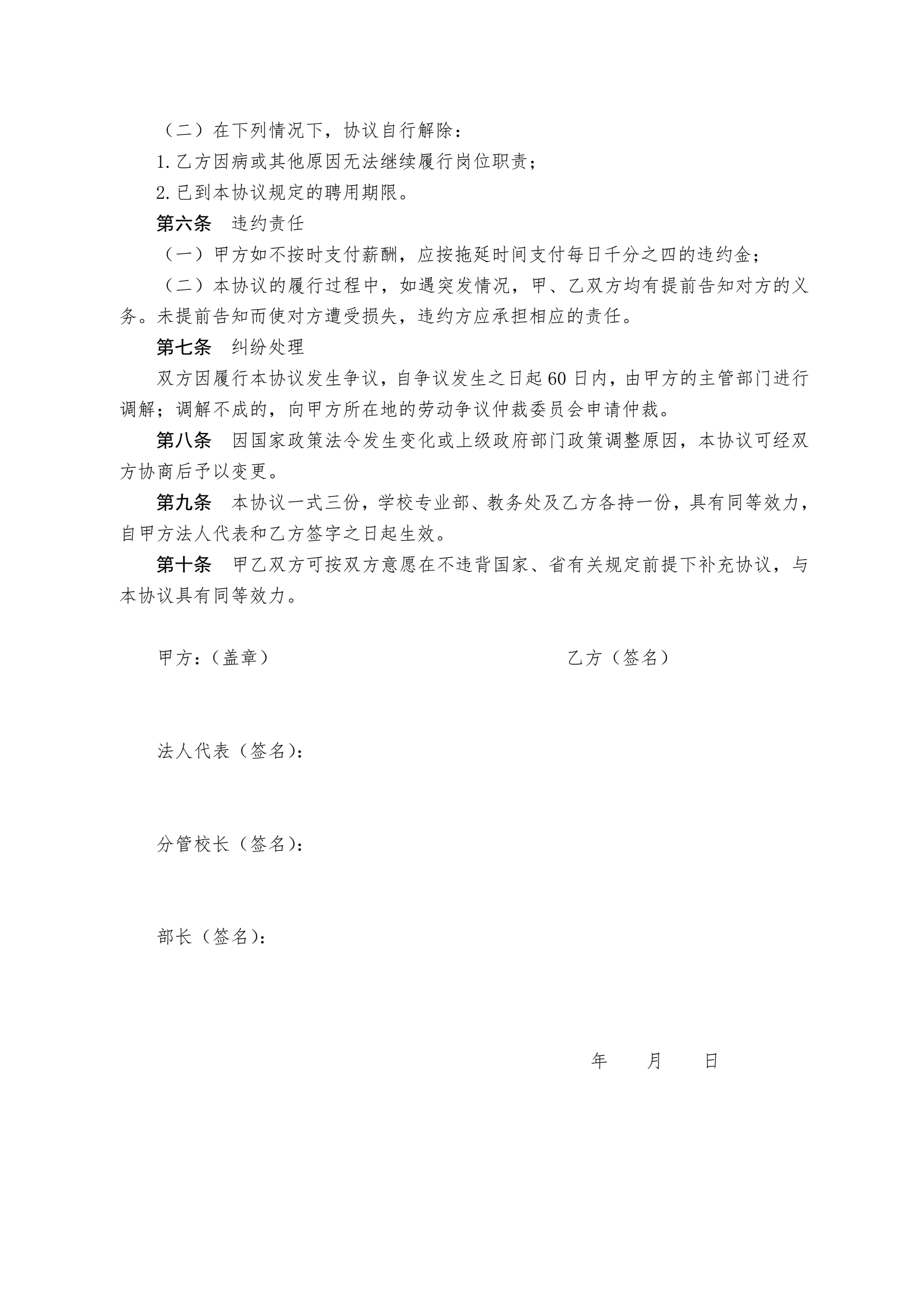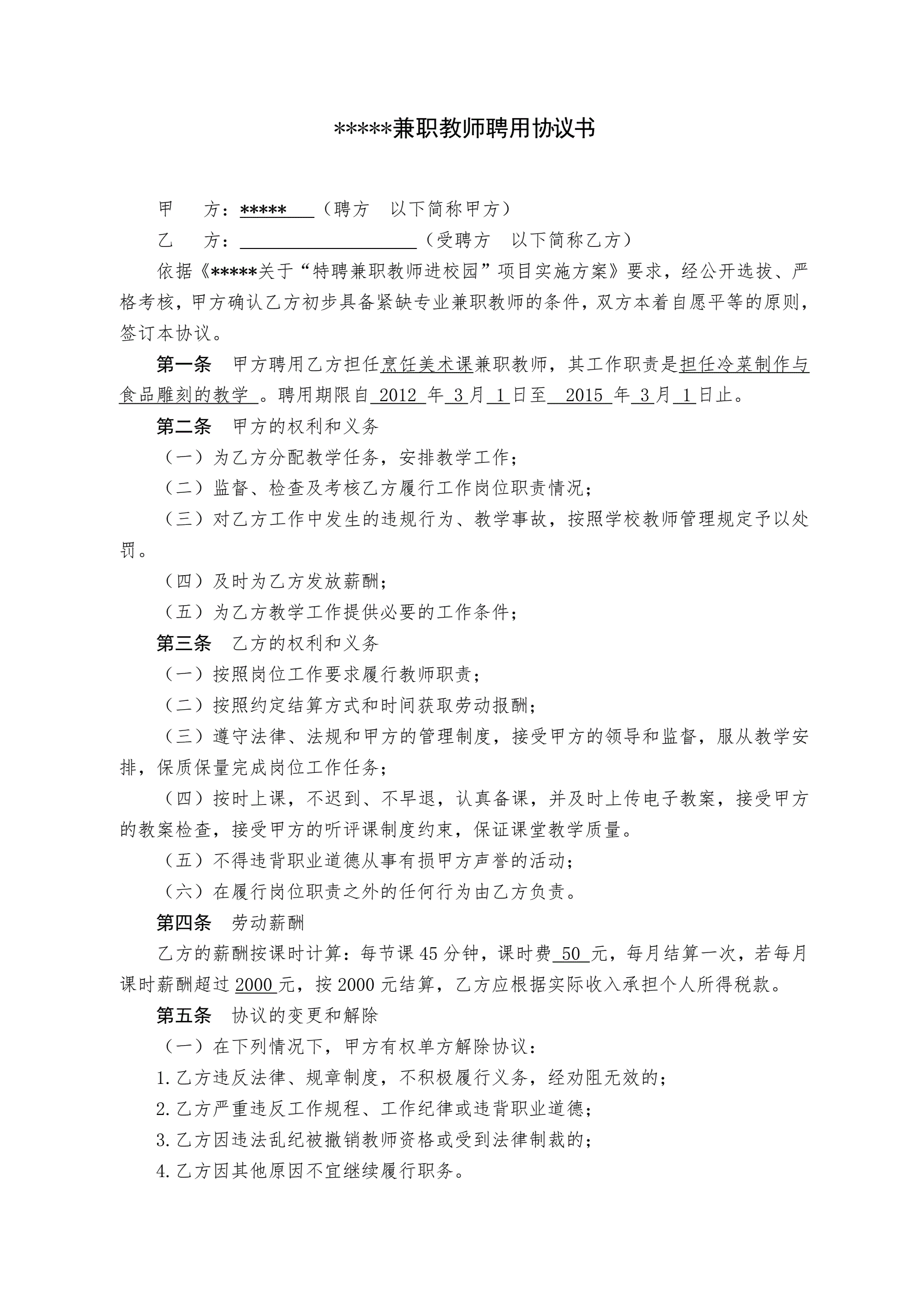 学校兼职教师聘用协议书