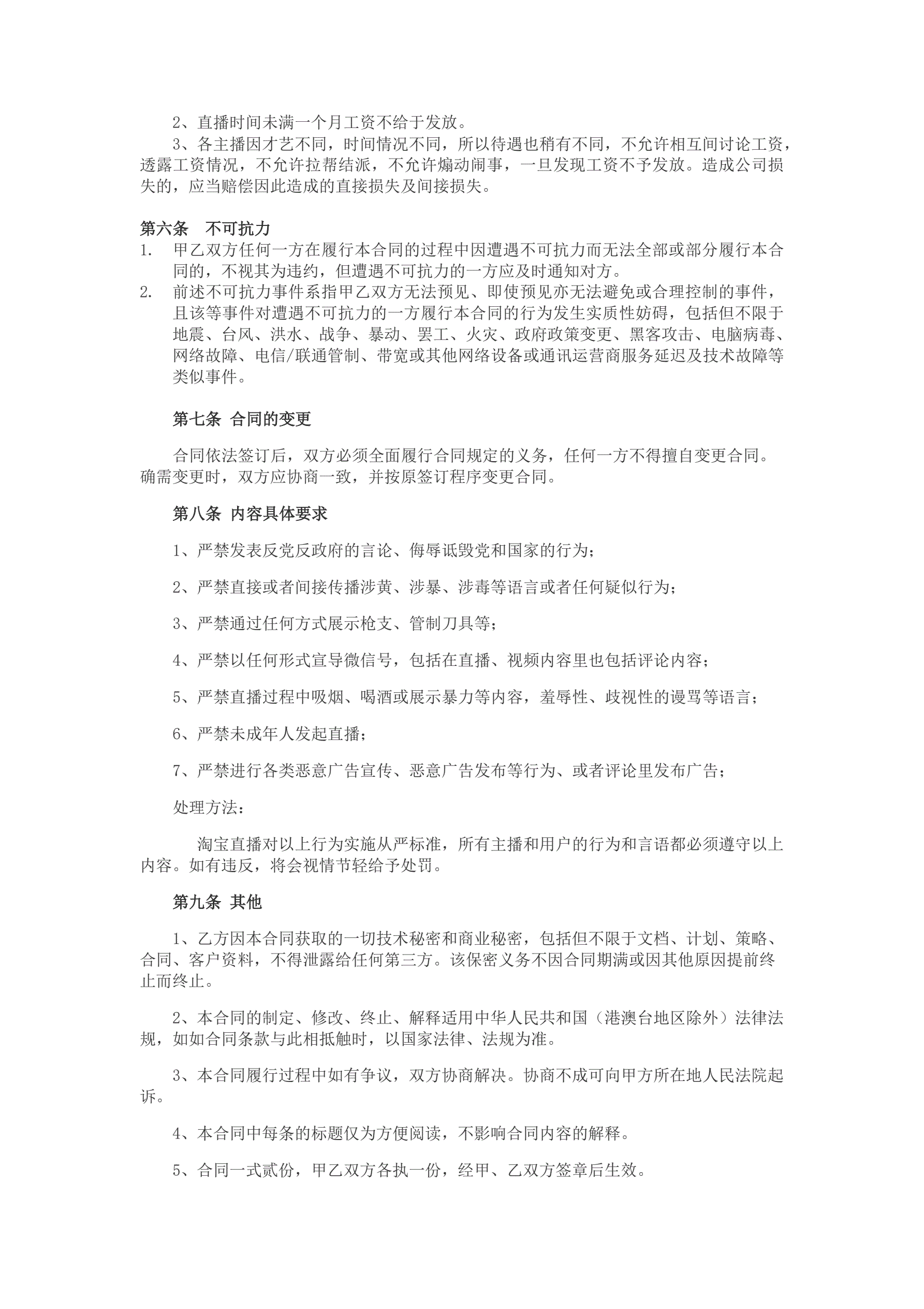 >招募主播合同