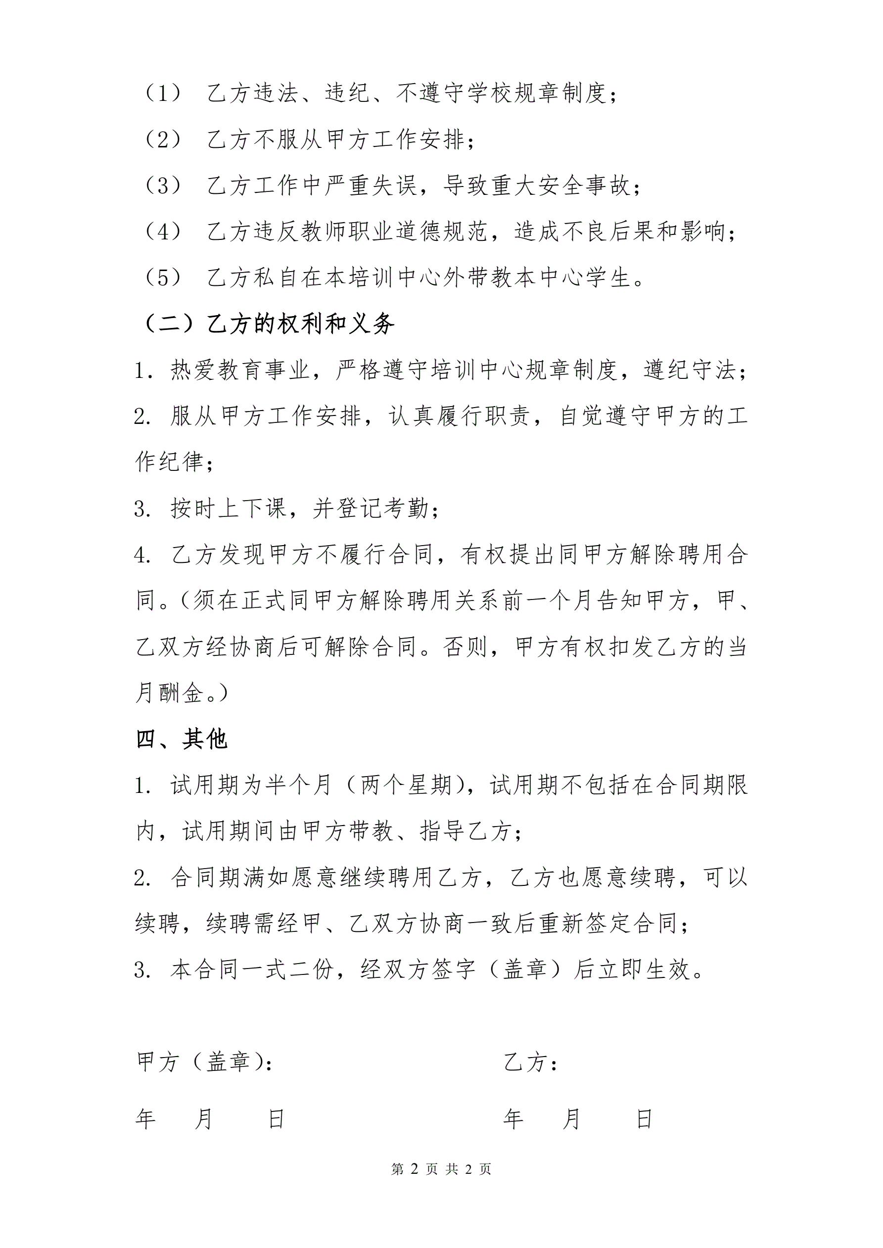 舞蹈老师聘用合同