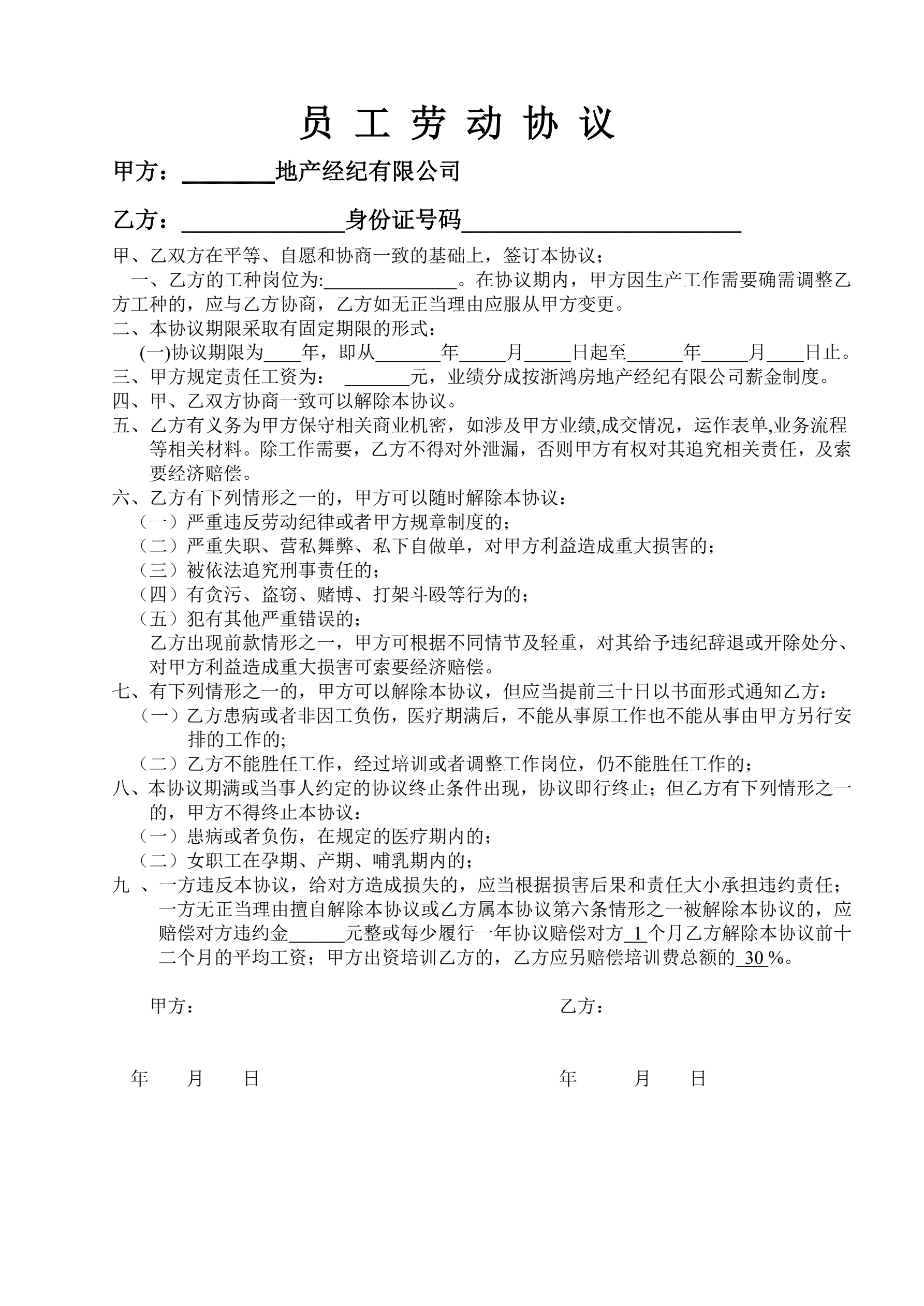 房产中介劳动合同范本