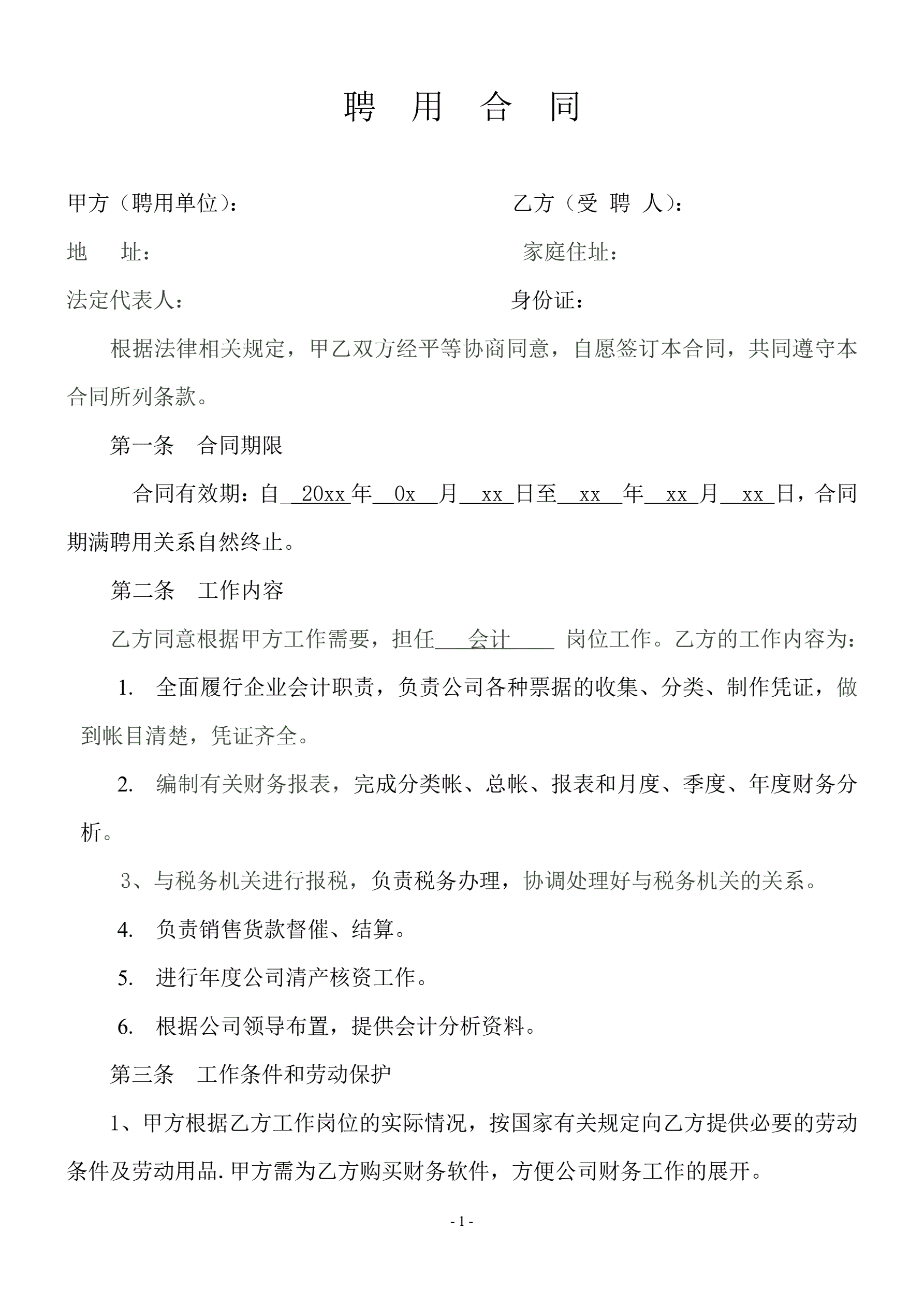 企业会计人员聘用合同