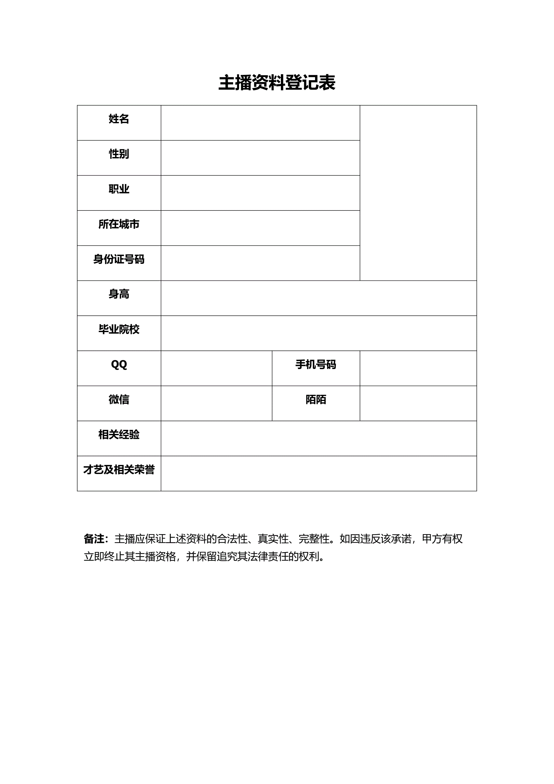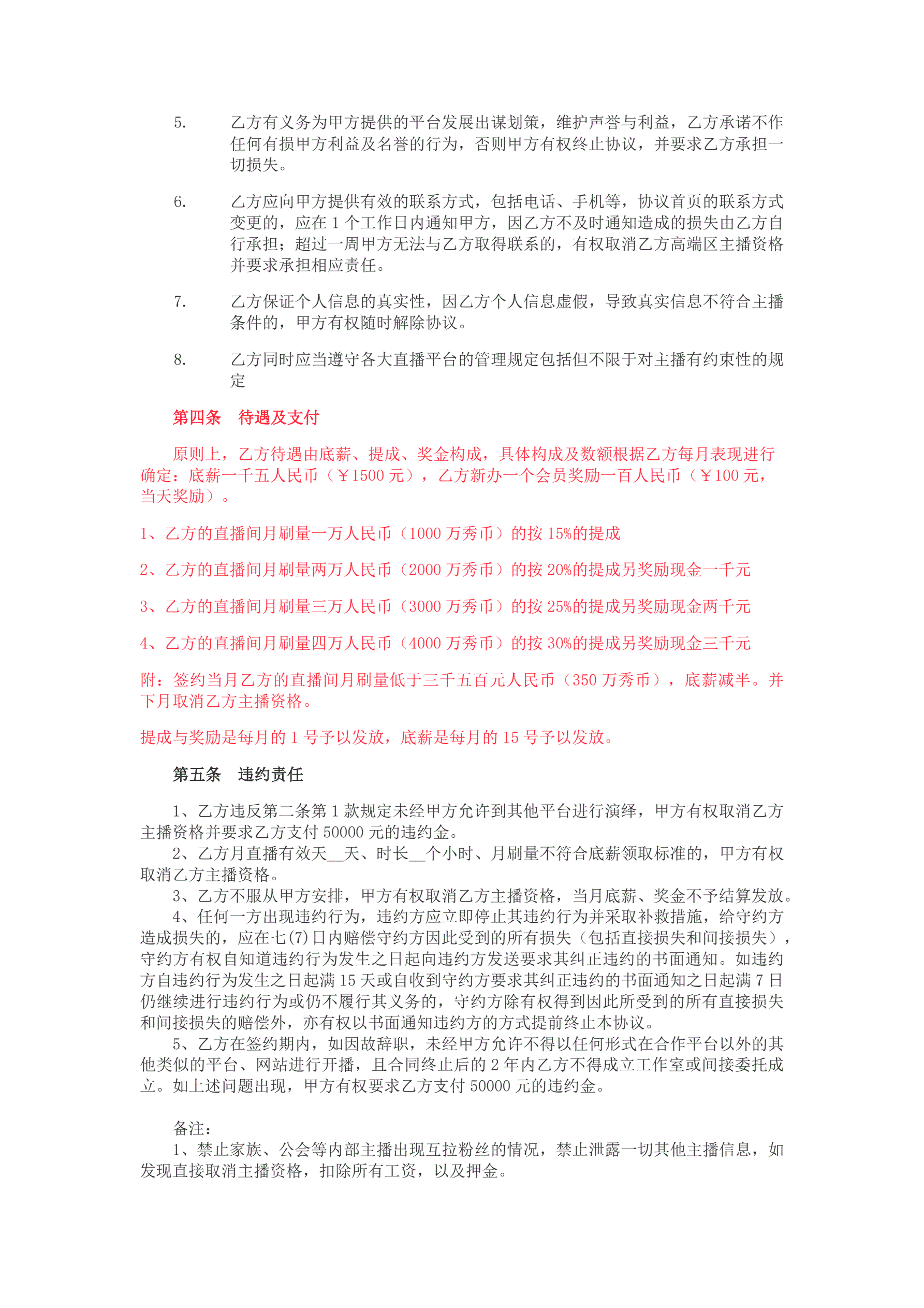 >招募主播合同