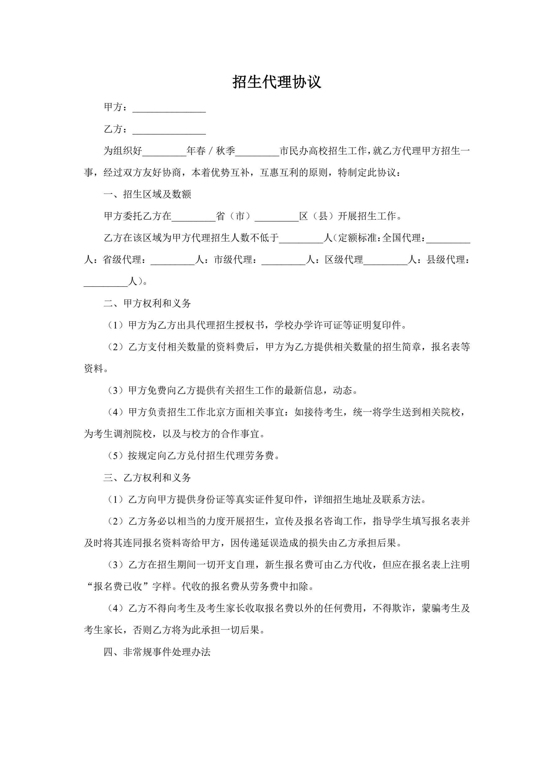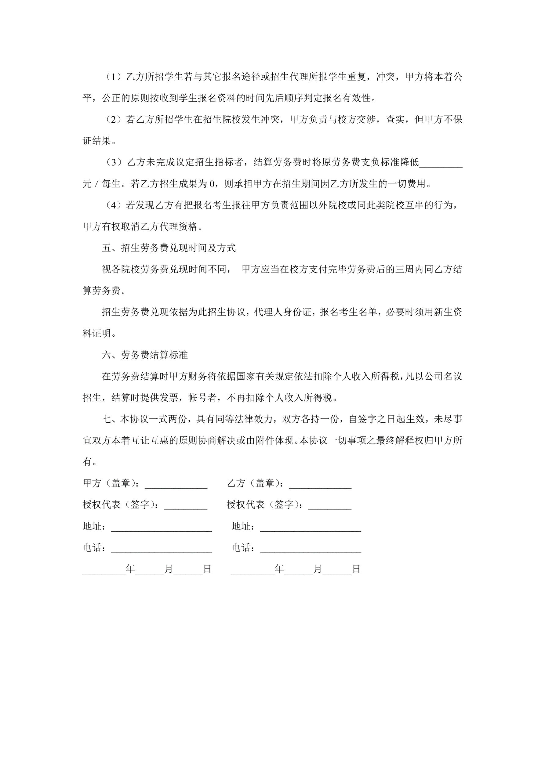 >招生代理协议
