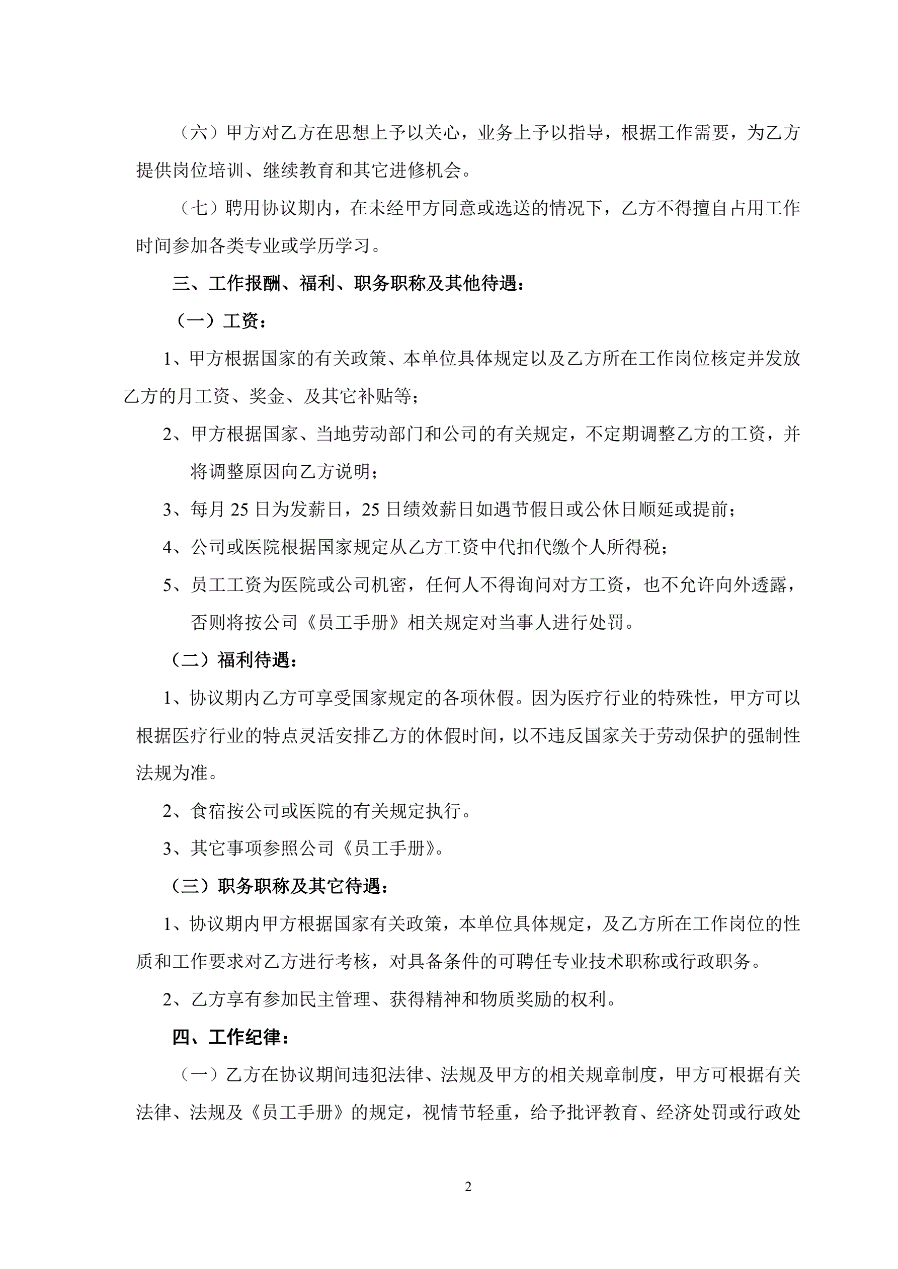 民营医院职工劳动合同