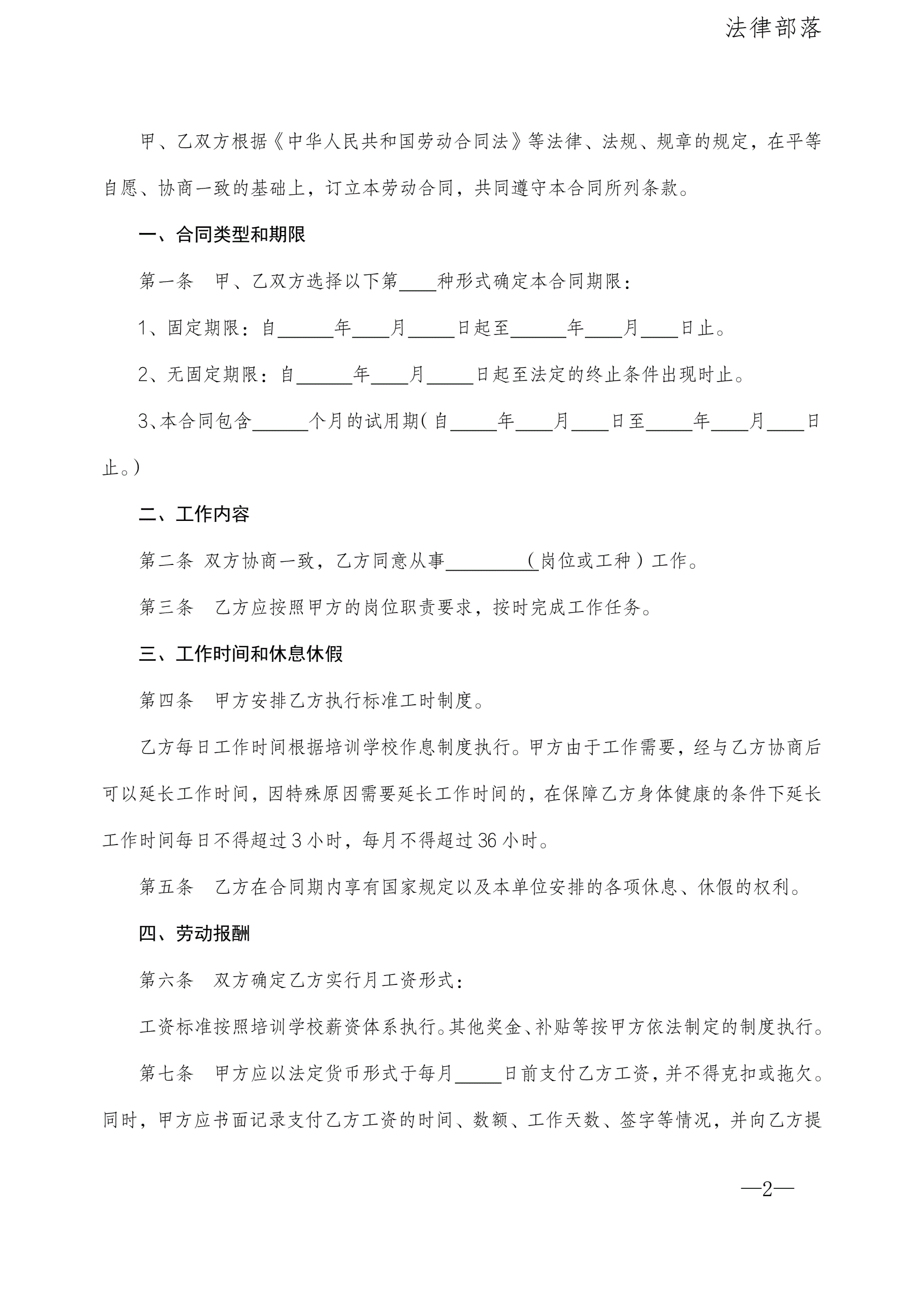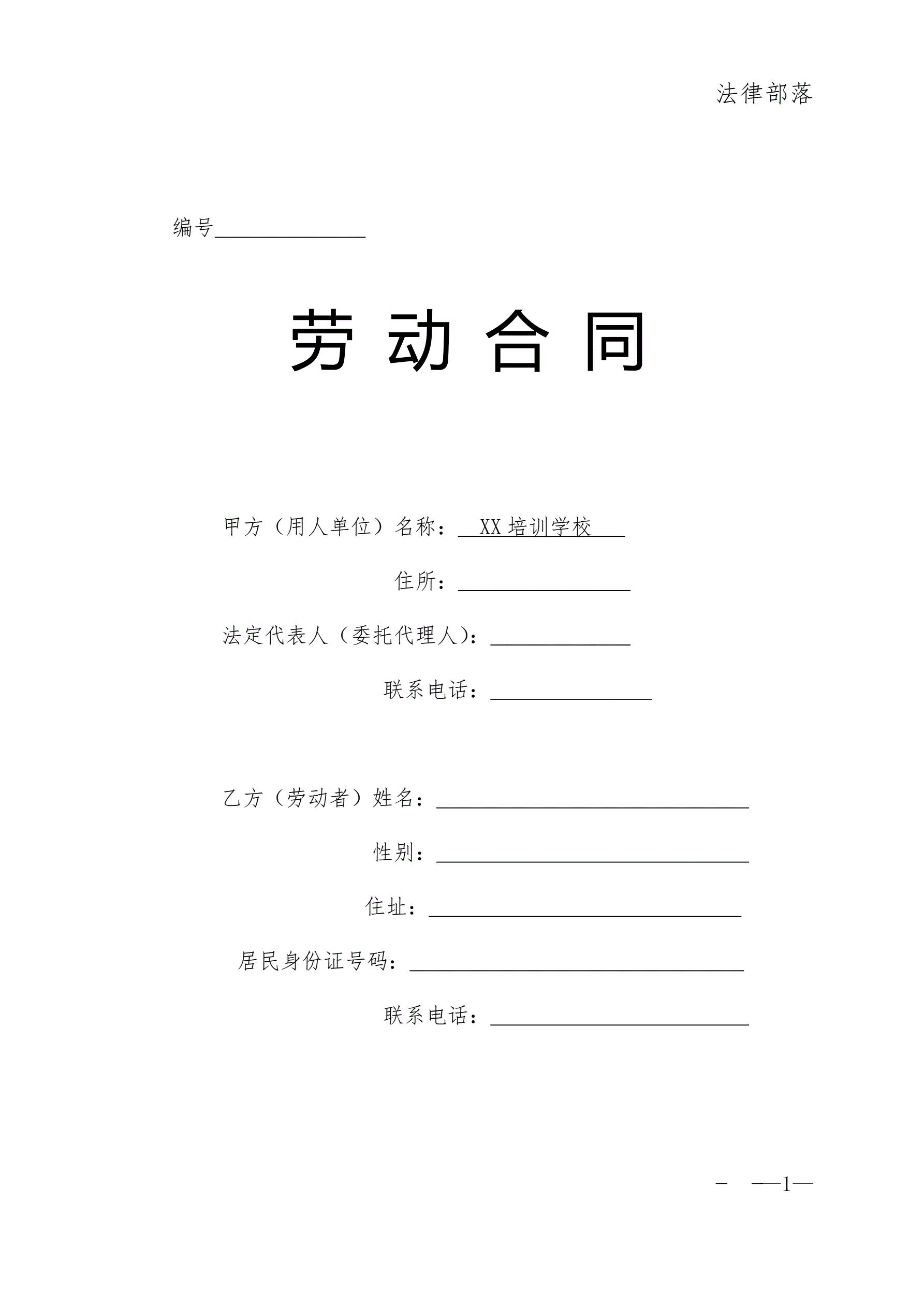 培训学校劳动合同书