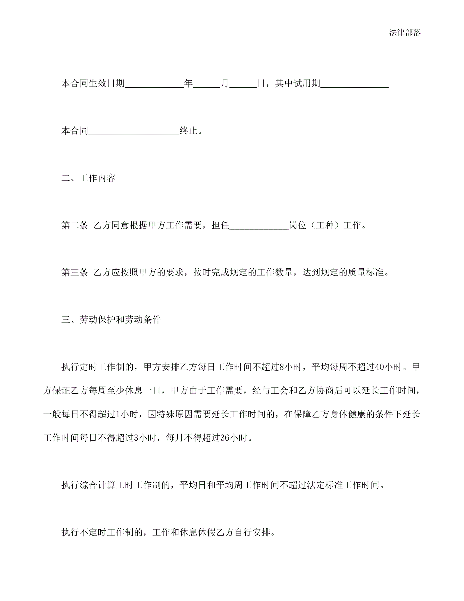 劳动合同书范本一