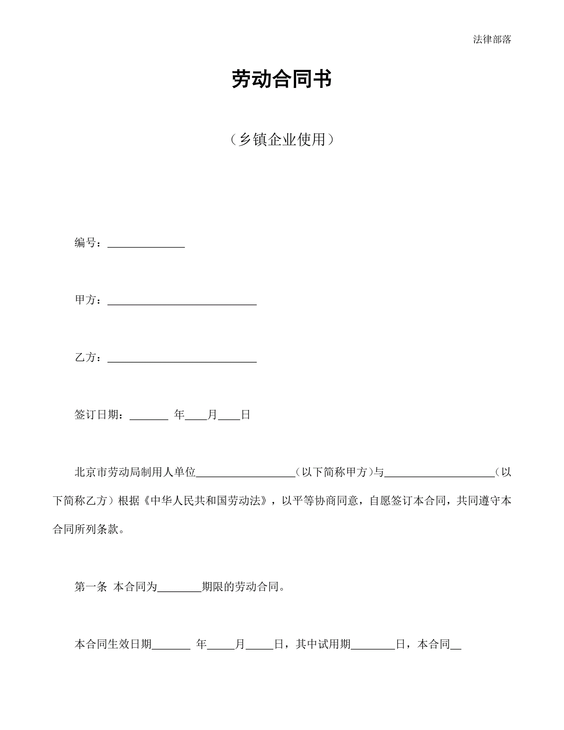 劳动合同书(乡镇企业使用)