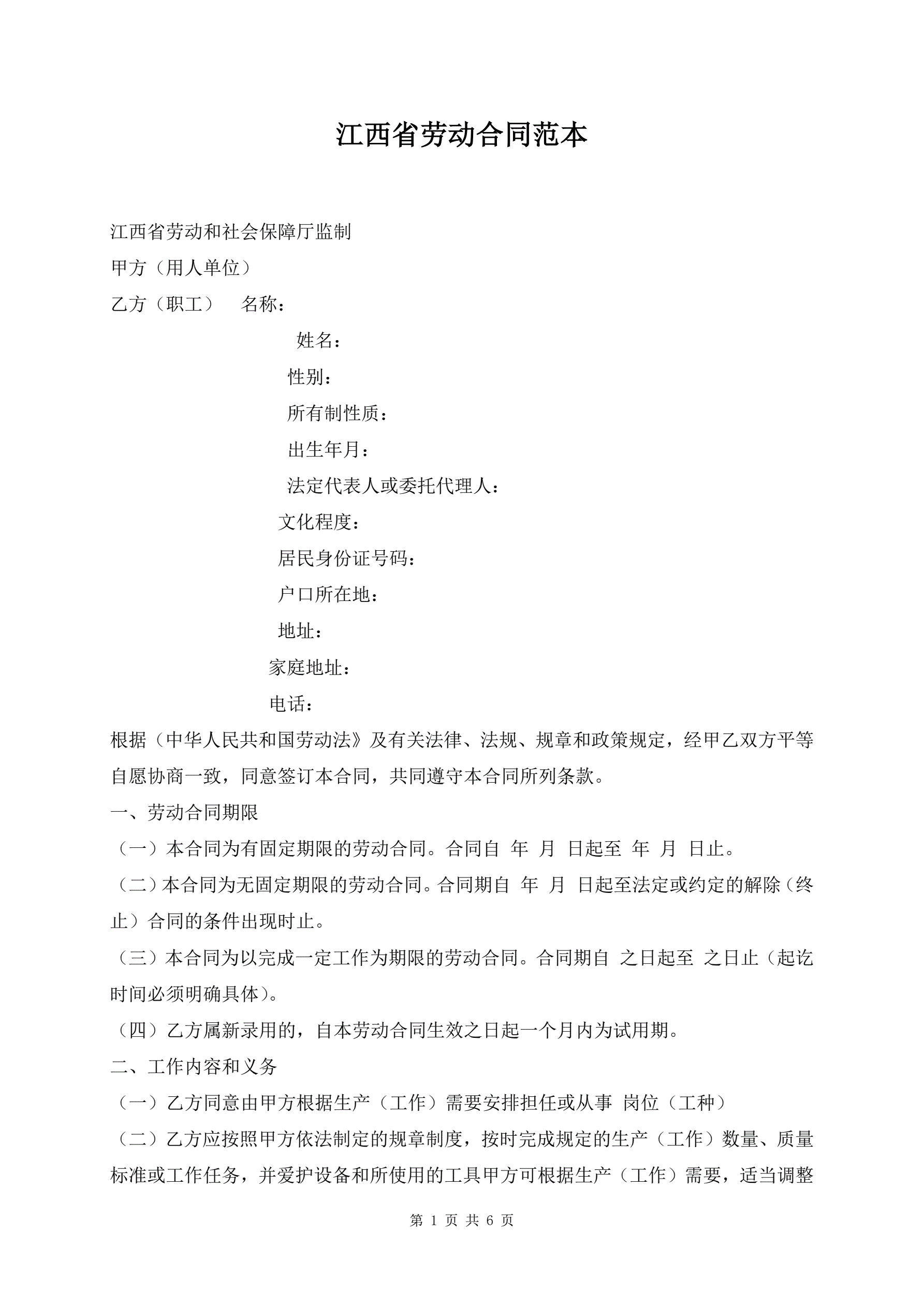 >江西省劳动合同范本
