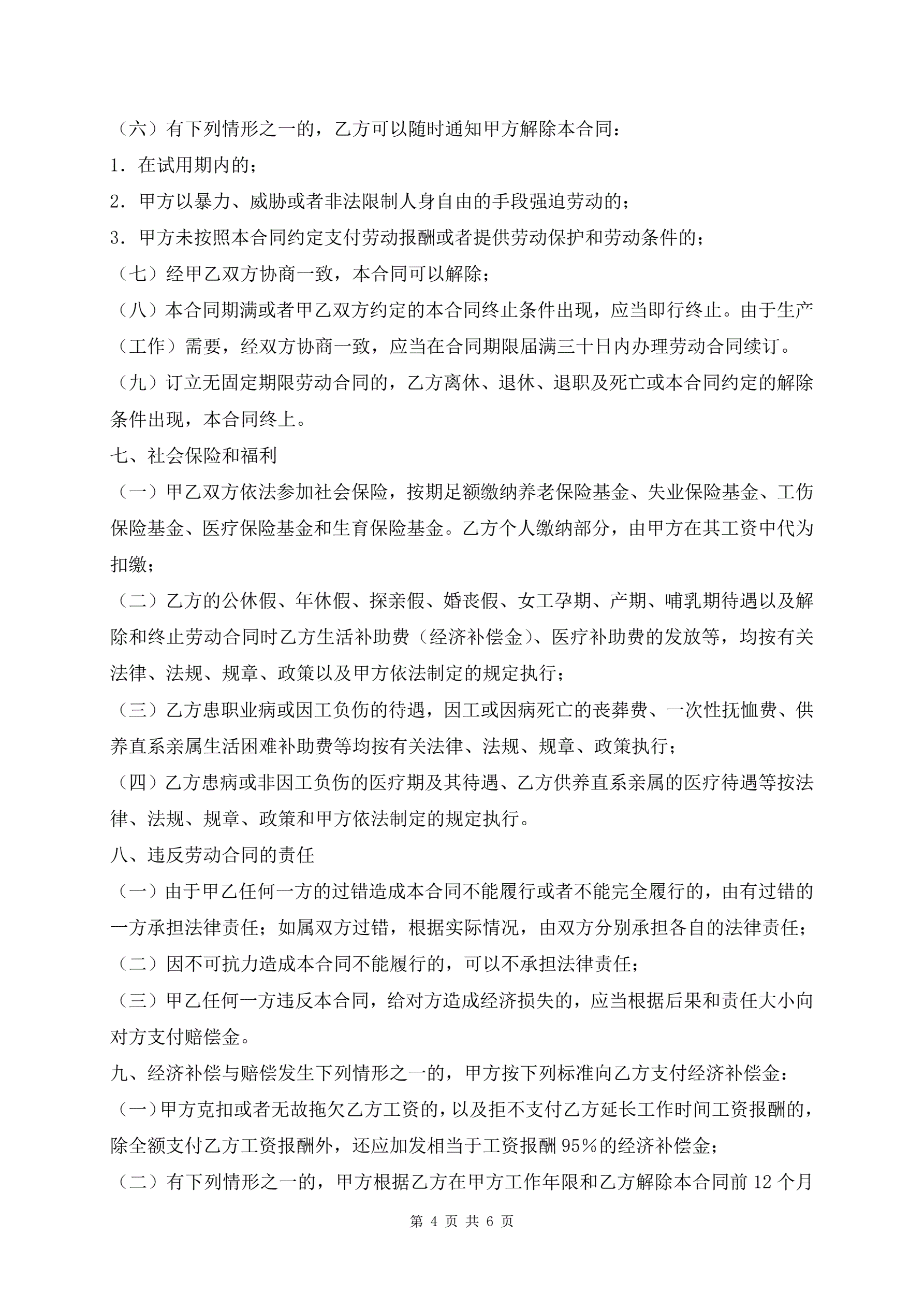江西省劳动合同范本
