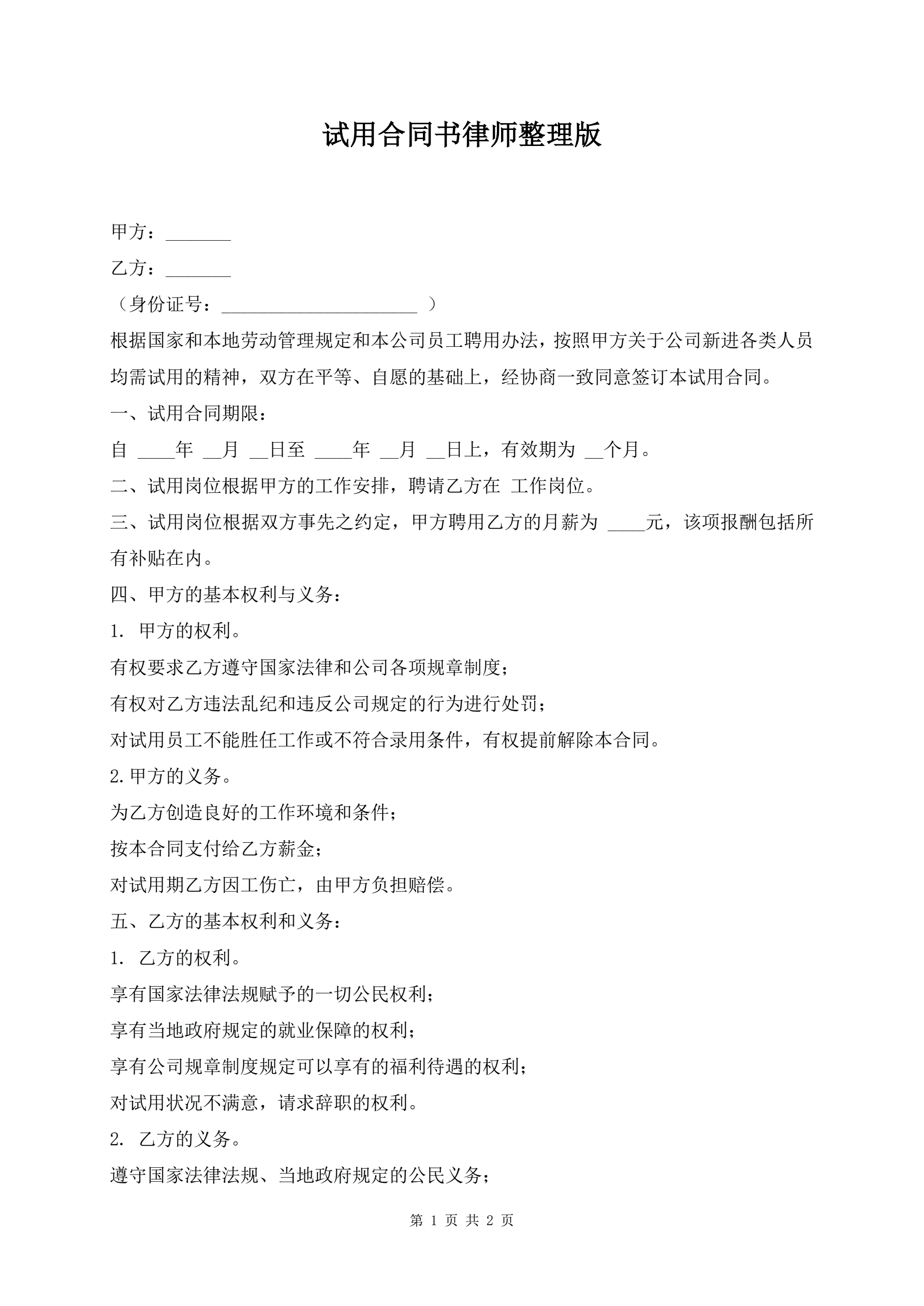 >试用合同书律师整理版