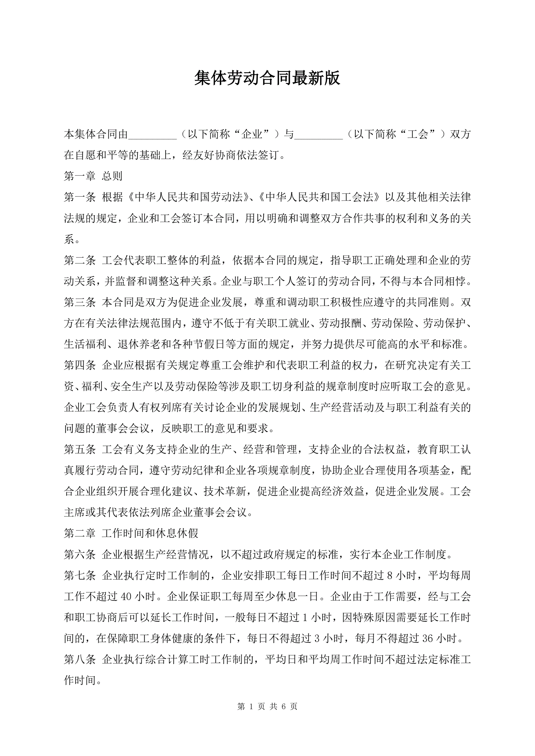 集体劳动合同最新版