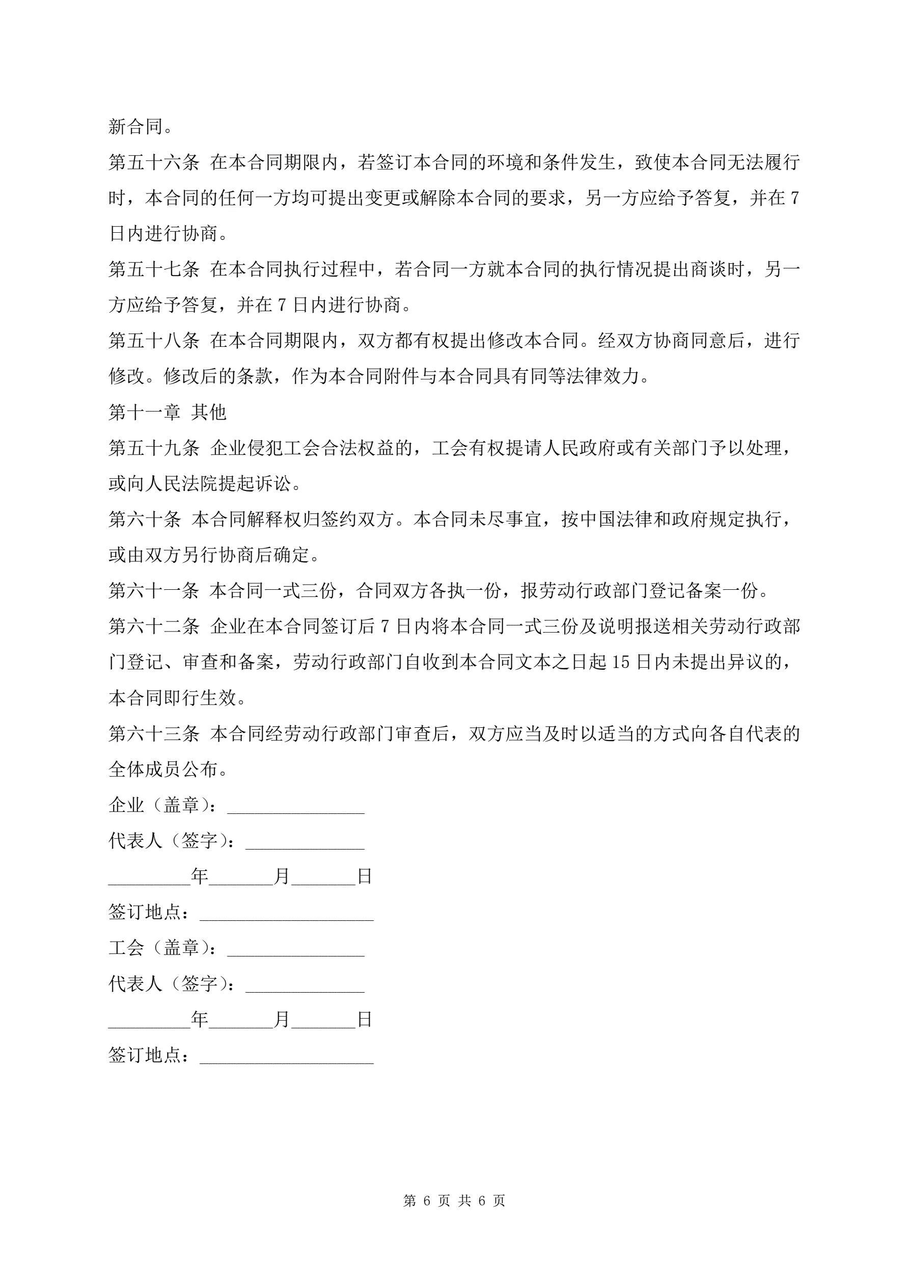 >集体劳动合同最新版