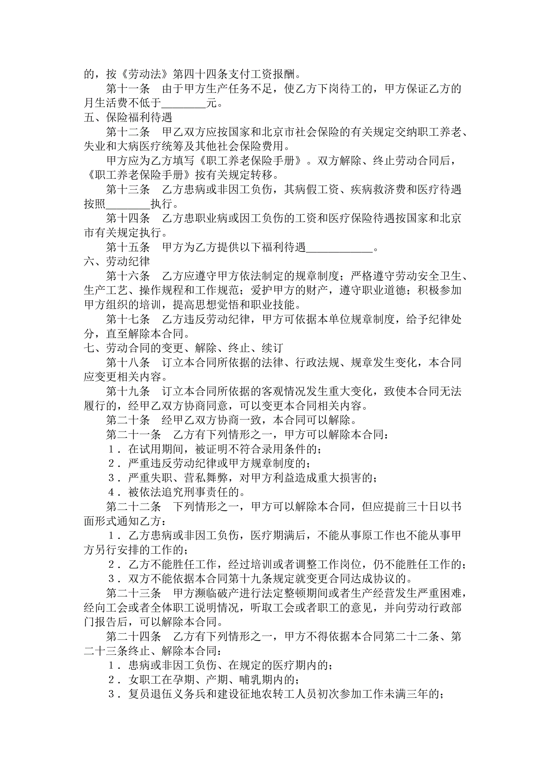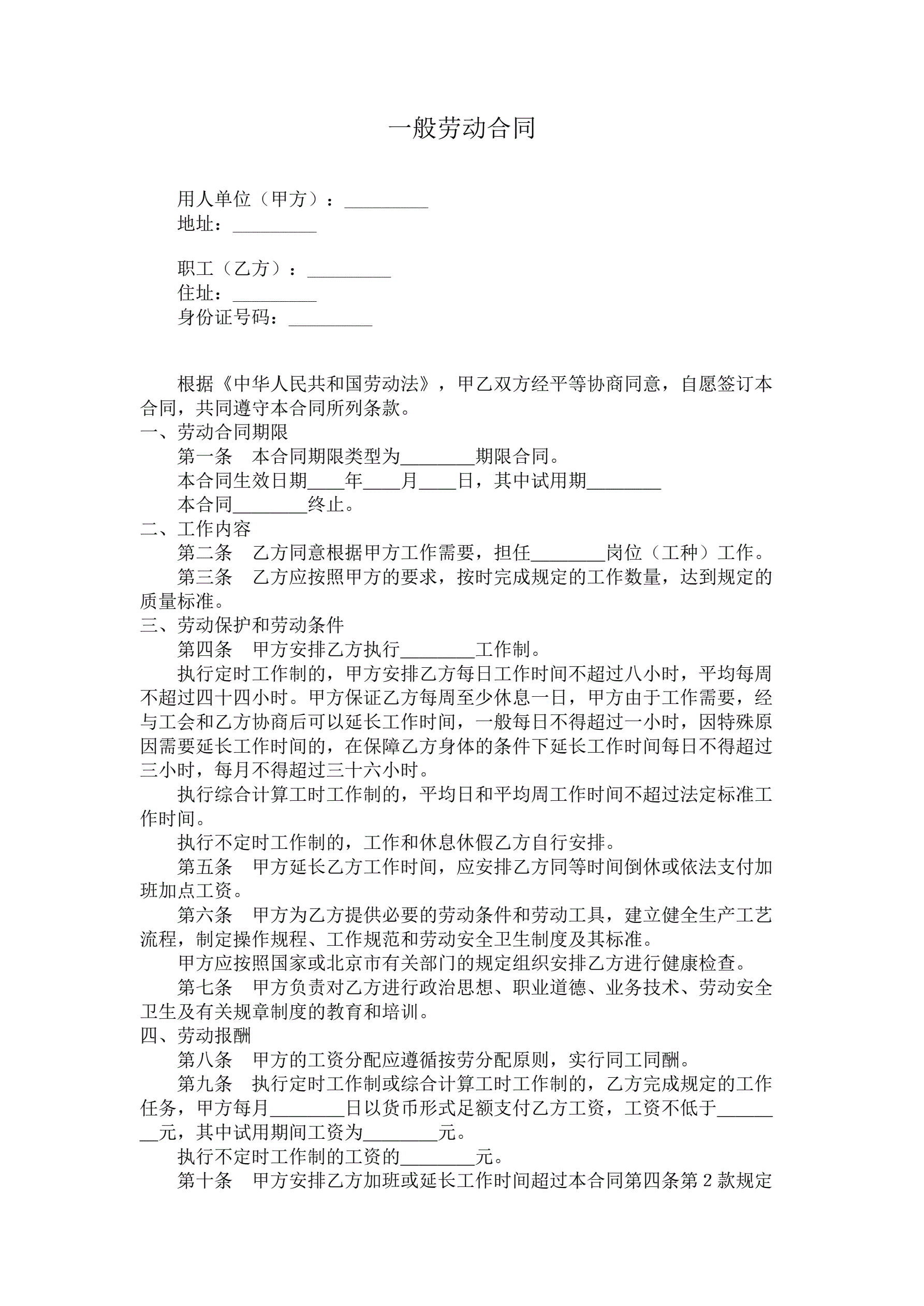 一般劳动合同