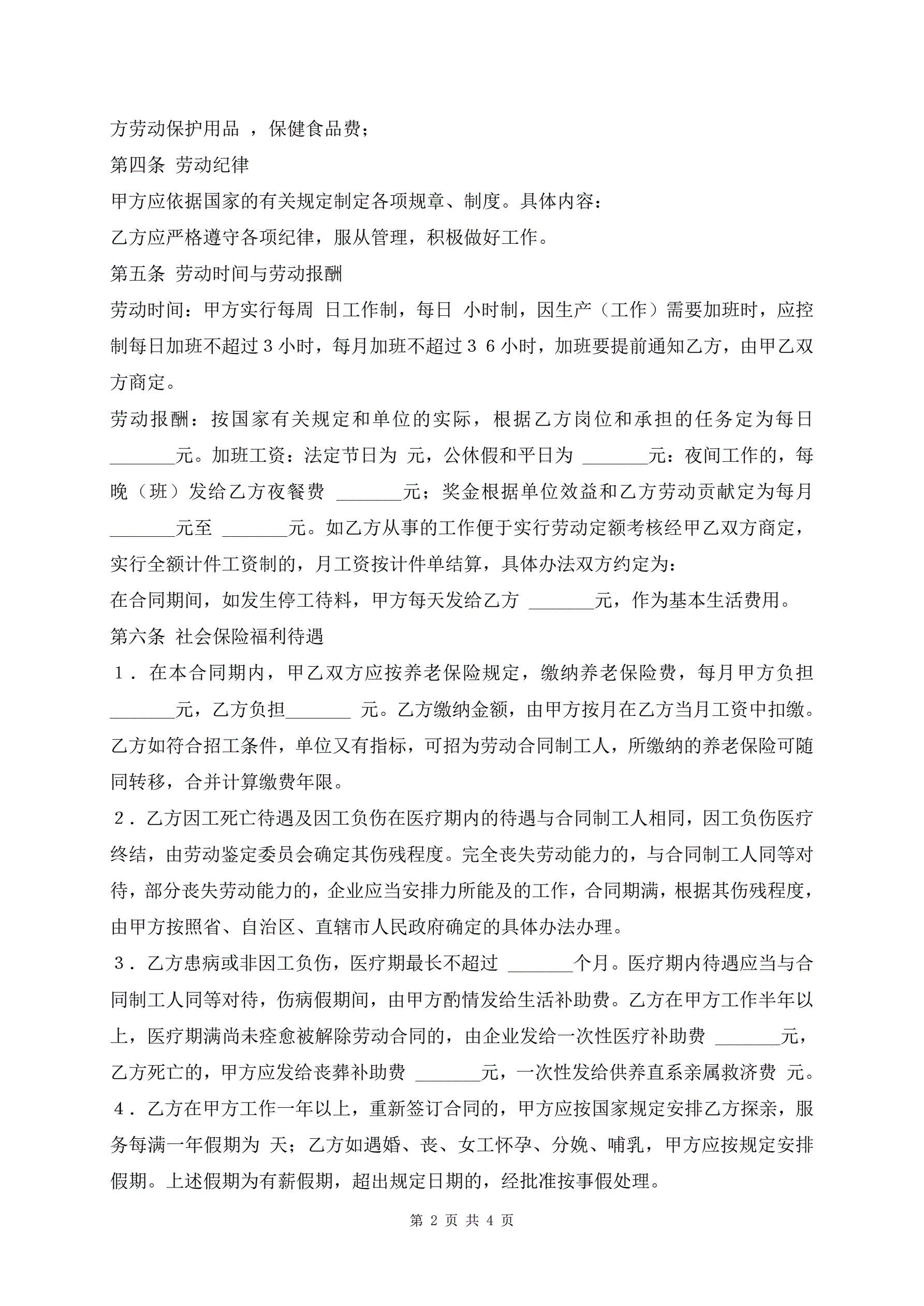 临时工劳动合同书