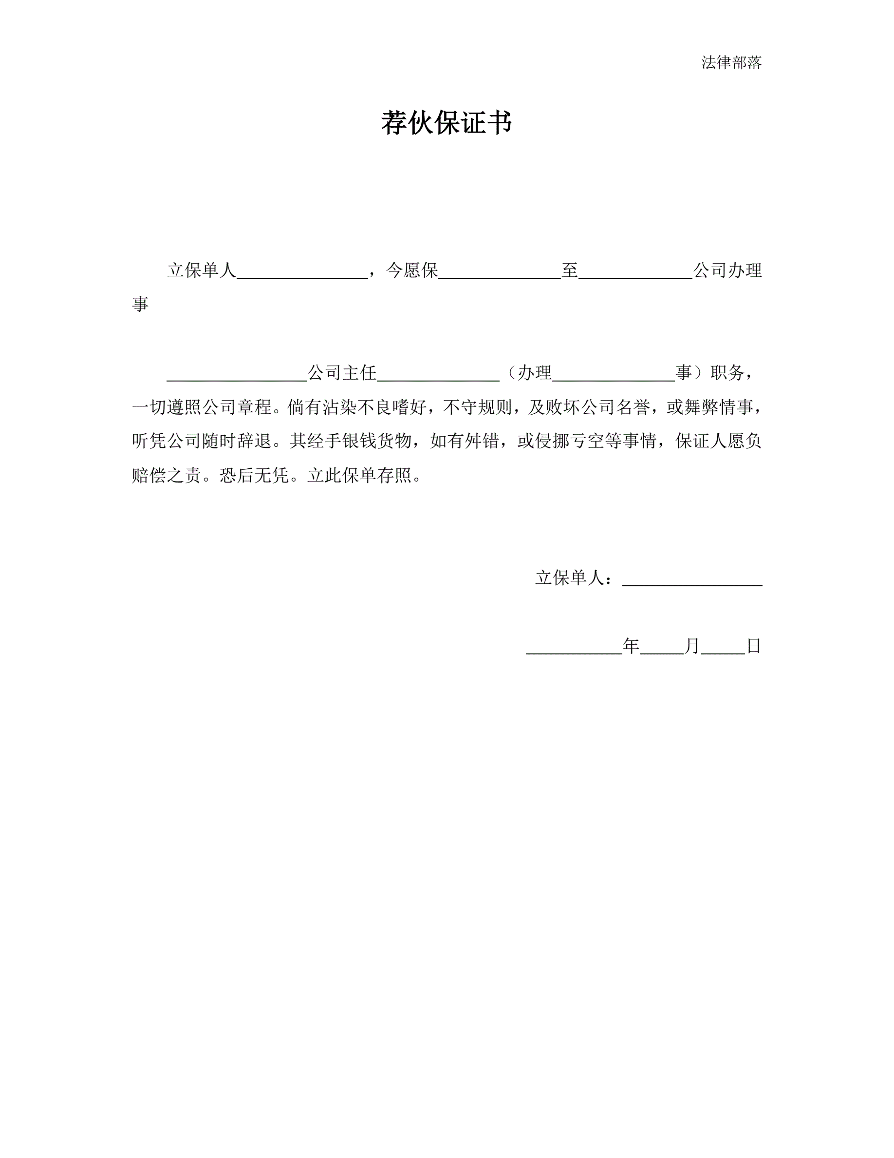 >荐伙保证书
