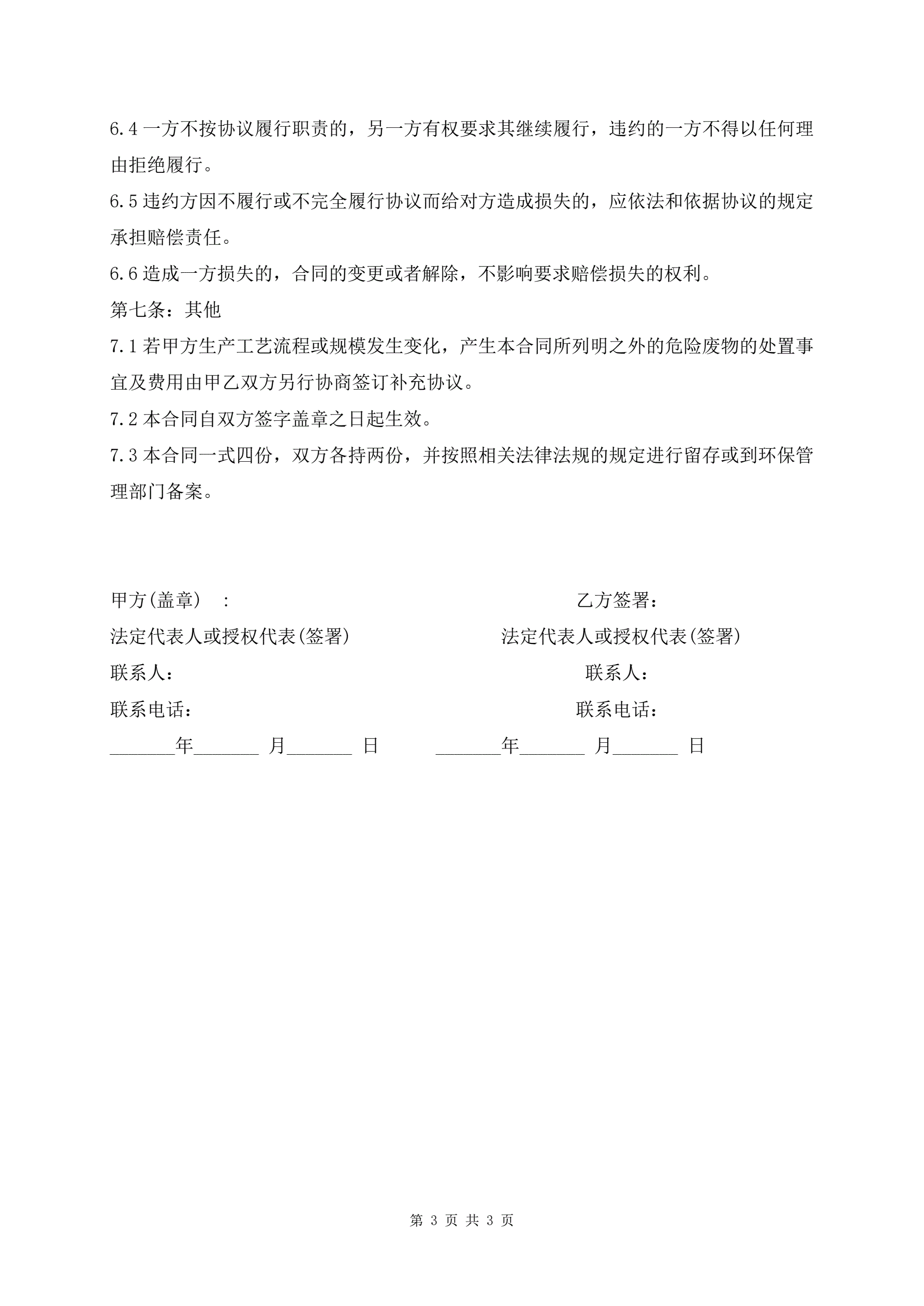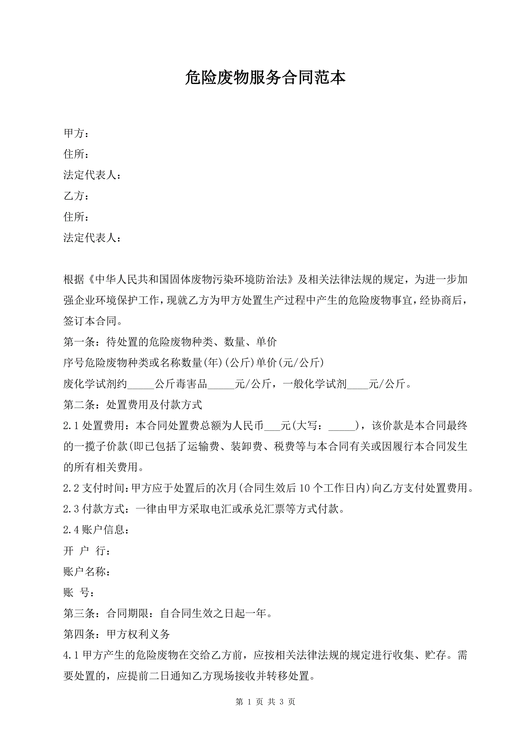 >危险废物服务合同范本