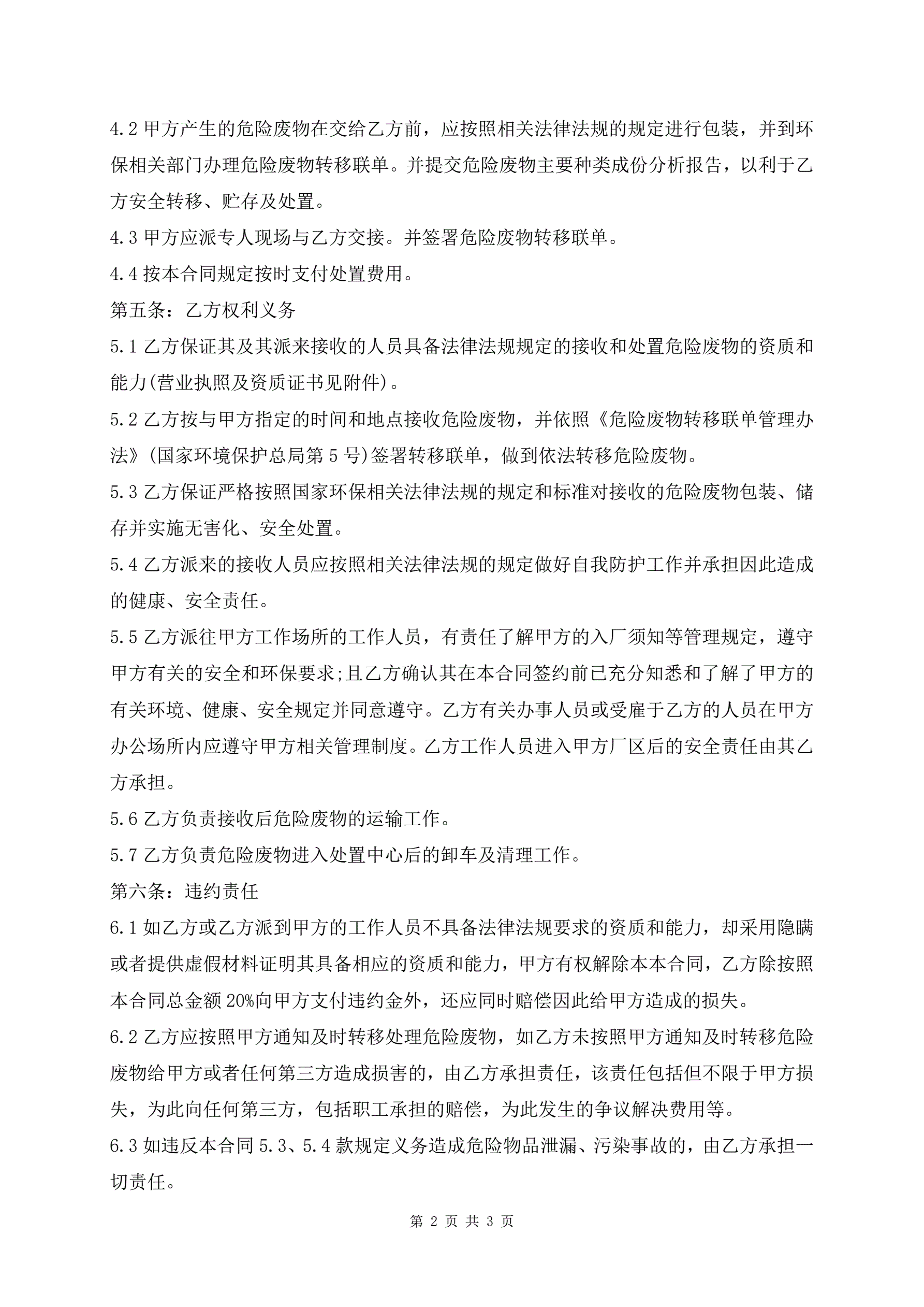 危险废物服务合同范本
