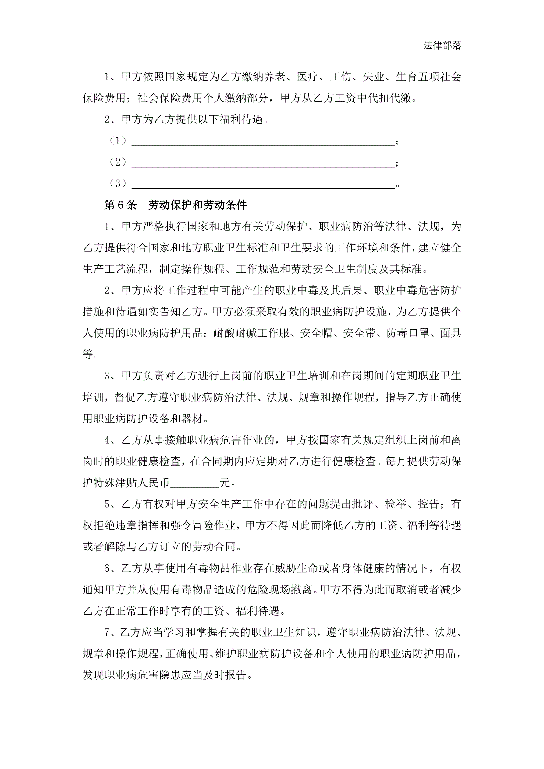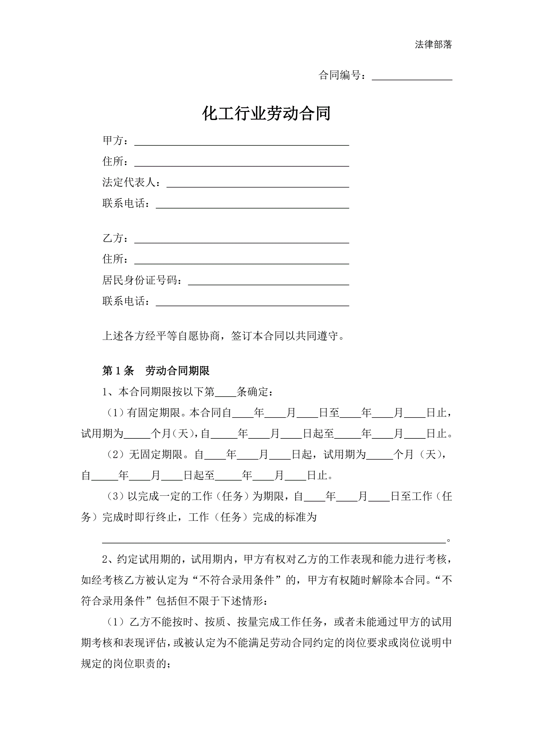 >化工行业劳动合同