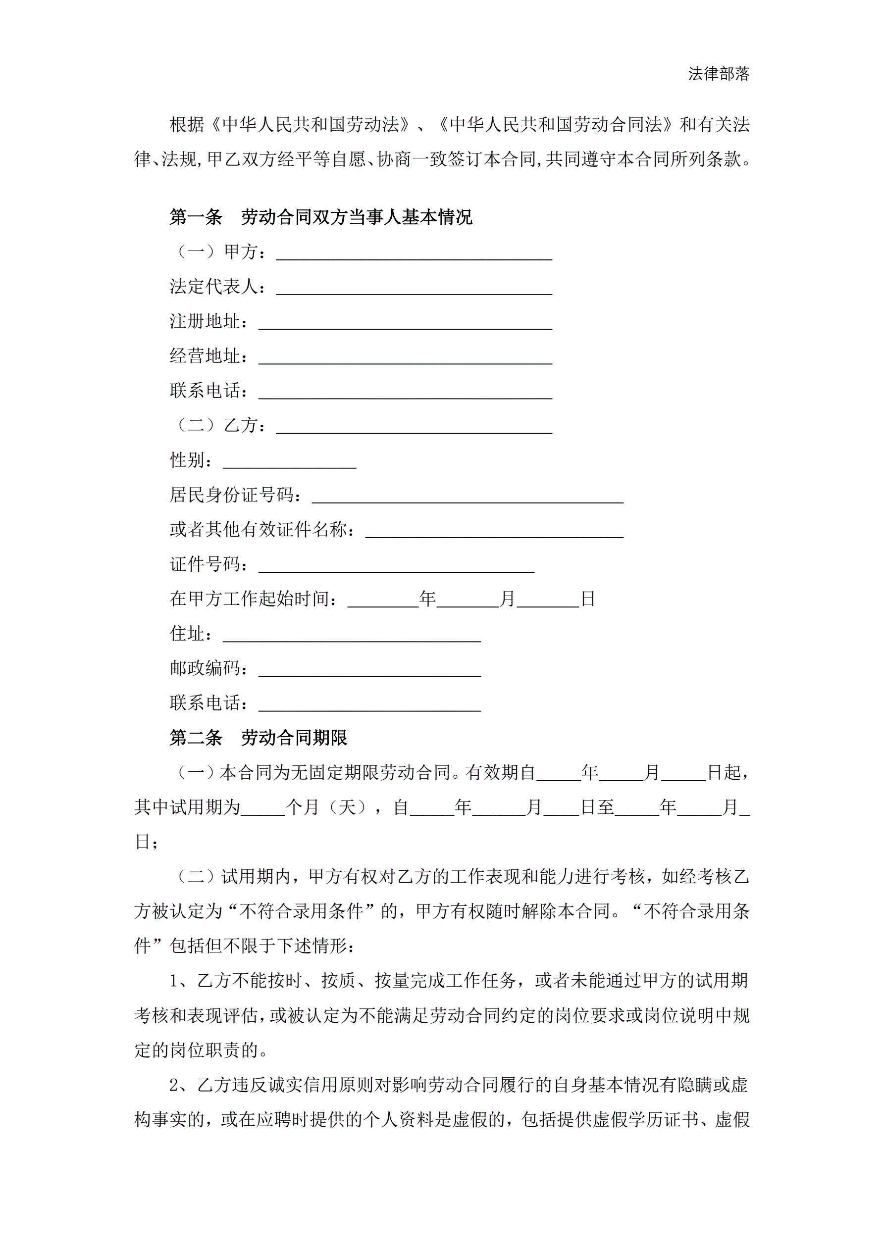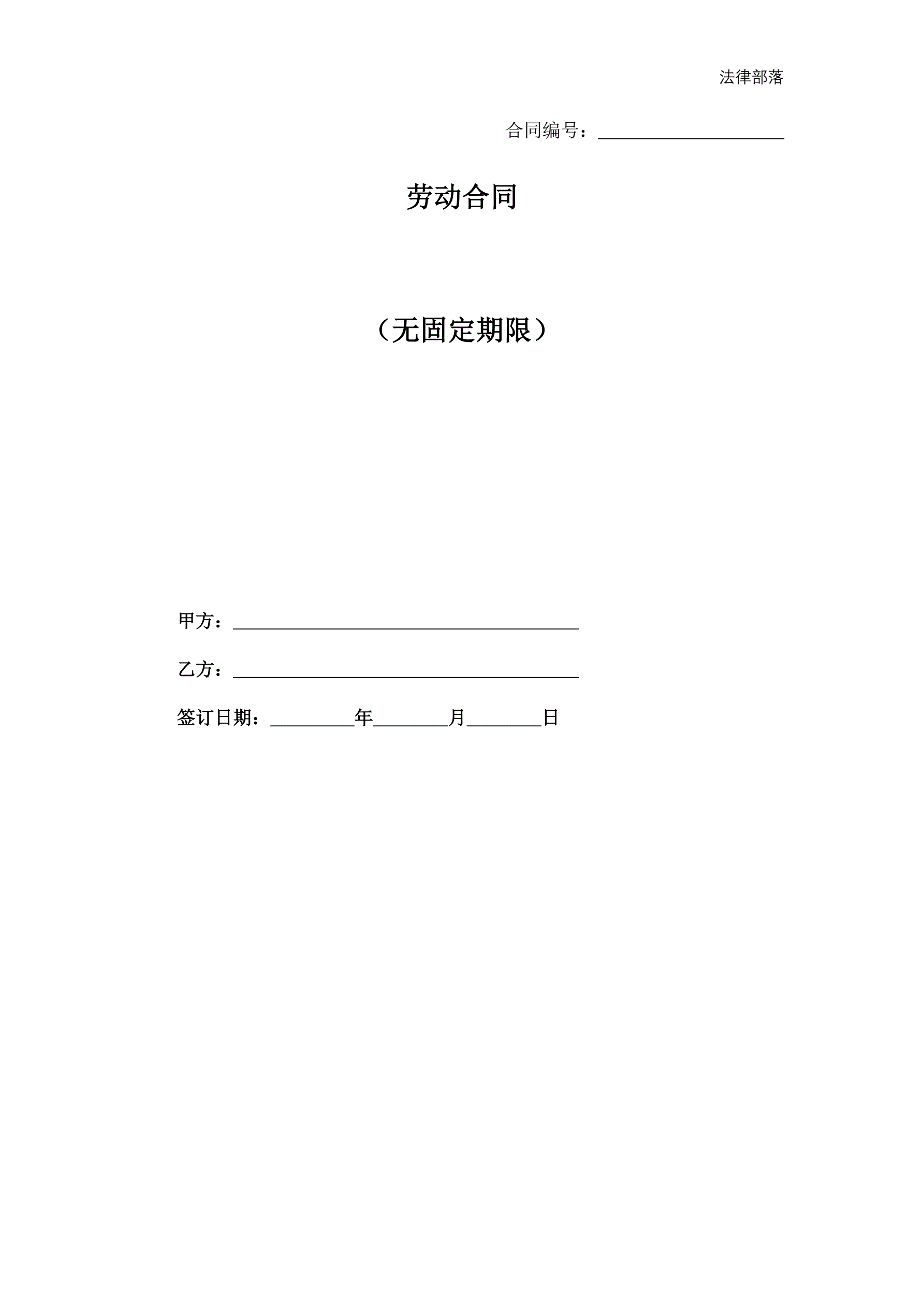 >劳动合同(无固定期限)