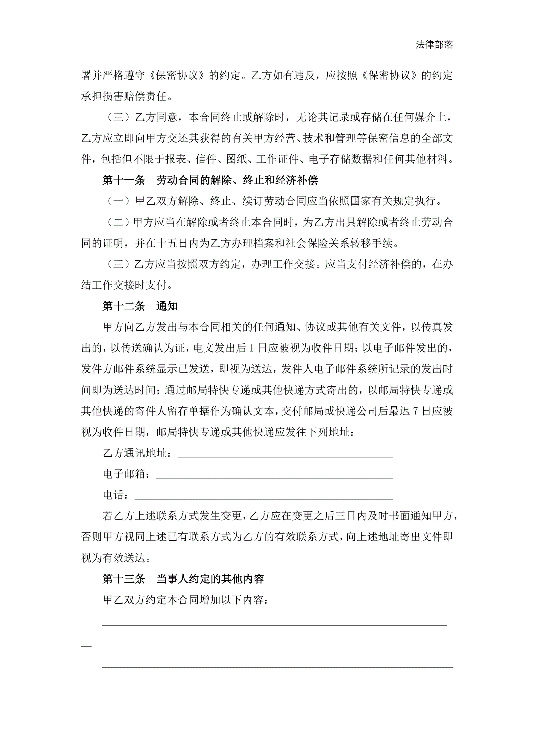 劳动合同(无固定期限)