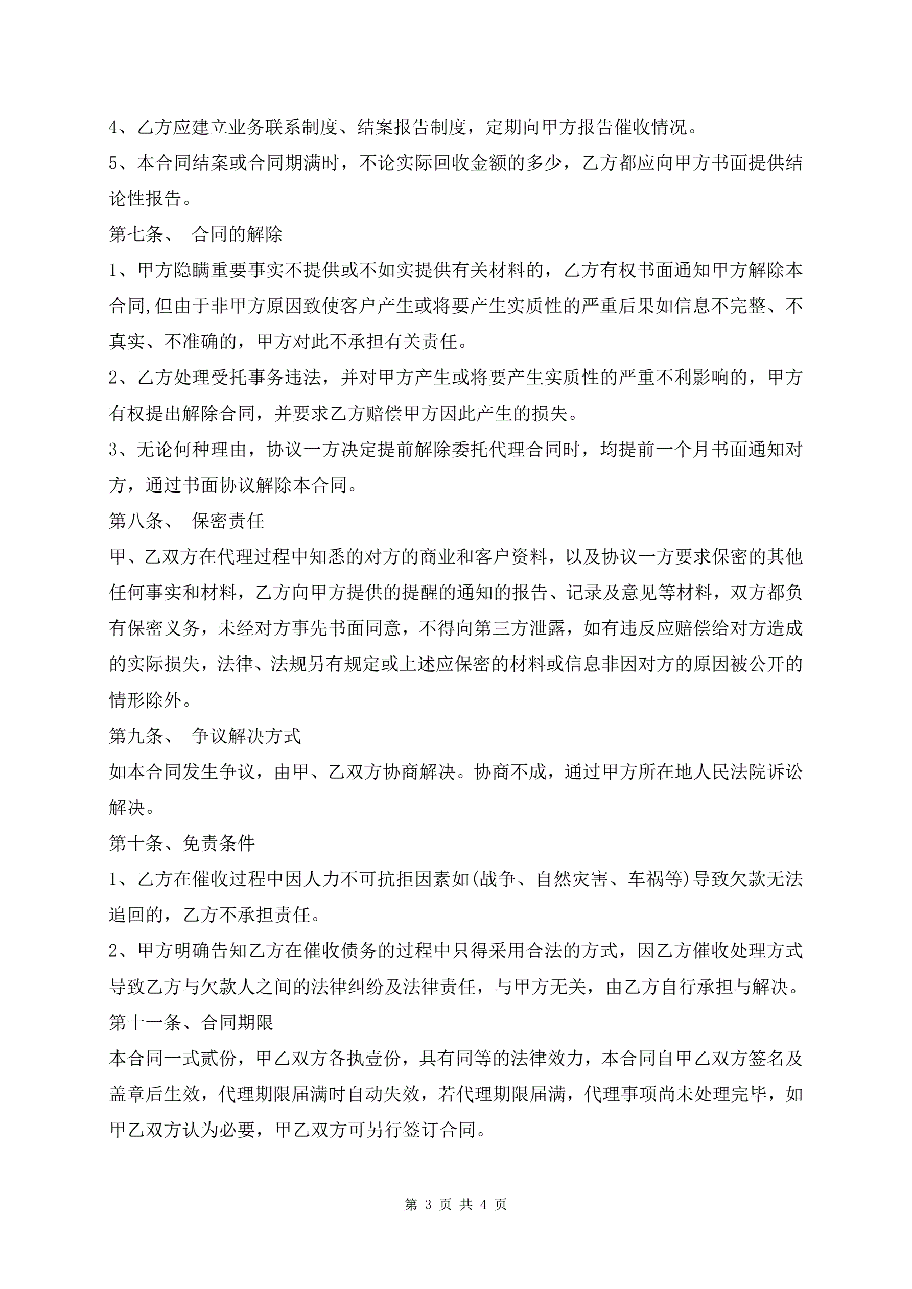 >最新版欠债催收服务委托代理合同