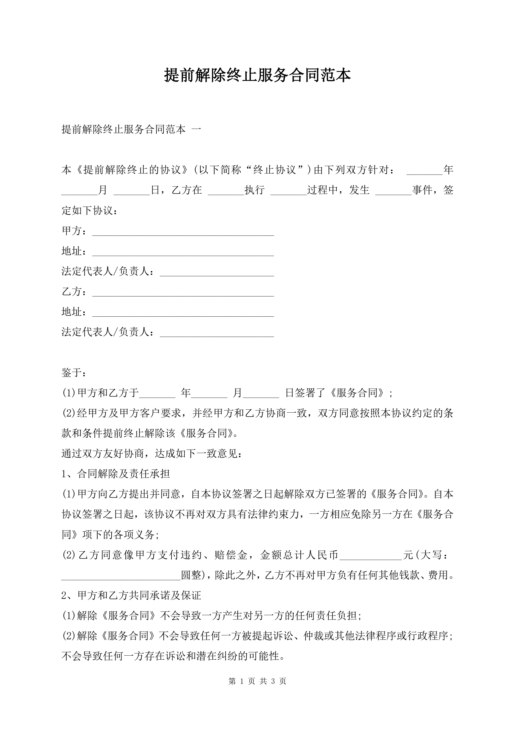 提前解除终止服务合同范本